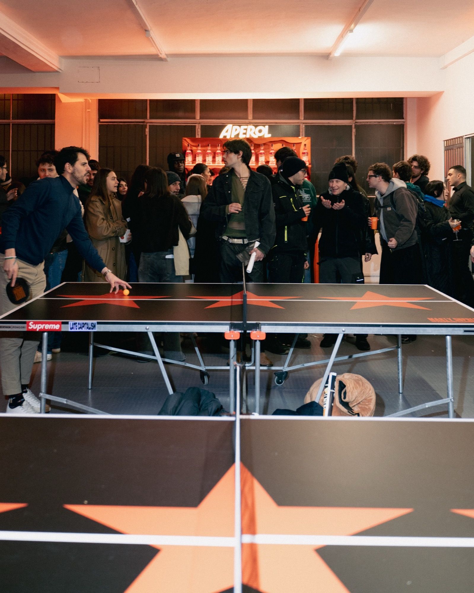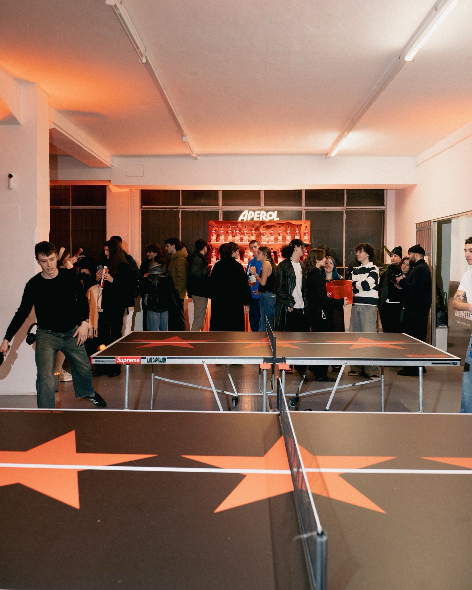 The community of nss magazine and DLSO gathered last night at Spazio Fonte for a series of table tennis matches, where 100 players channeled the competitive energy of Marty Mauser, facing off set after set in an atmosphere that was intense yet playful. An energy that never faded, fueled by Aperol cocktails—which also gave non-players a reason to enjoy the night—and by Lavazza coffee, essential in keeping players focused through the final hours of the event.
