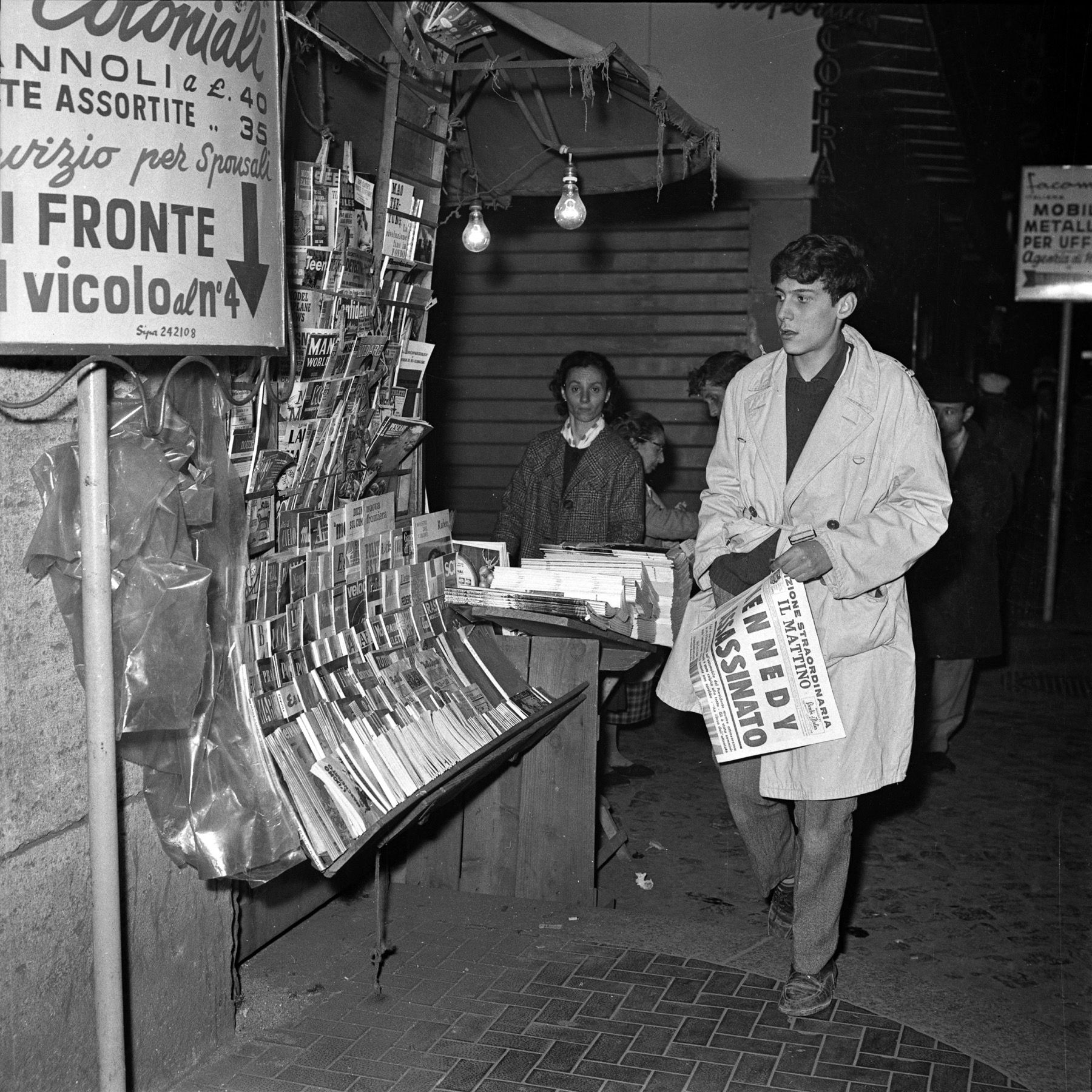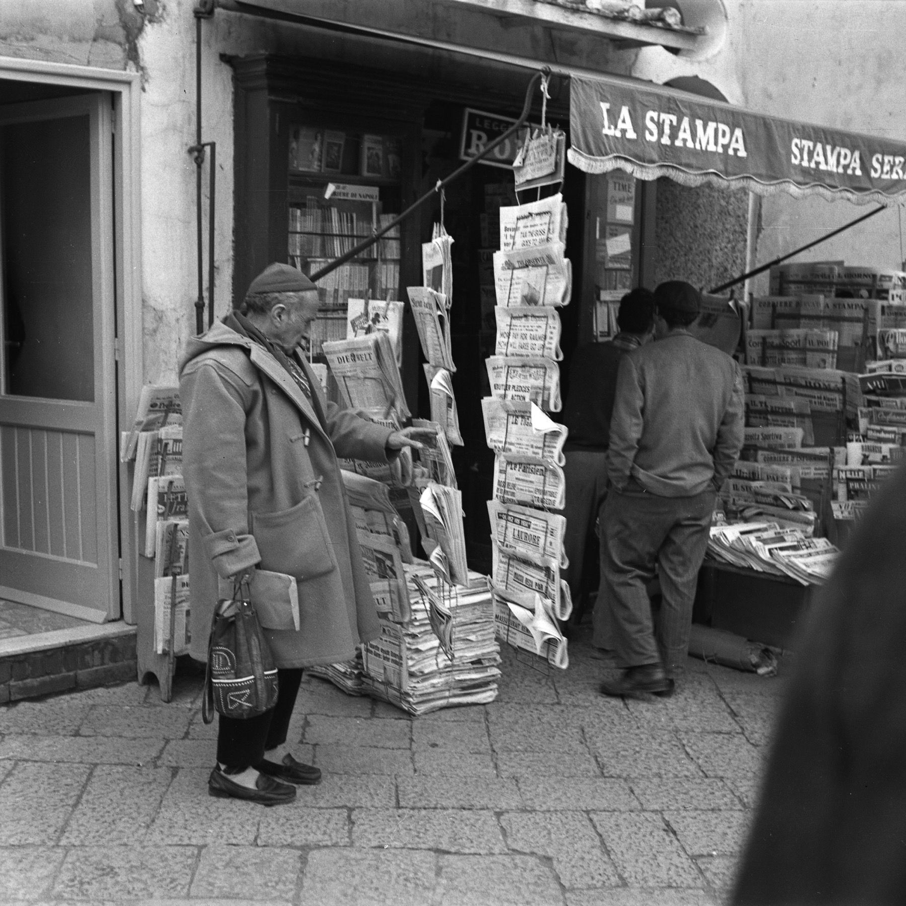 In 1973, with his usual caustic and paradoxical style, Guido Ceronetti observed that the two newsstands on Via Veneto in Rome seemed to suffer from gigantism: alongside Italian newspapers, they sold American magazines, German papers, Soviet satire, and a great deal of pornography. Above all, an influx of classics had arrived: Kant, Hegel, Kafka. Newspapers had disappeared behind piles of books.