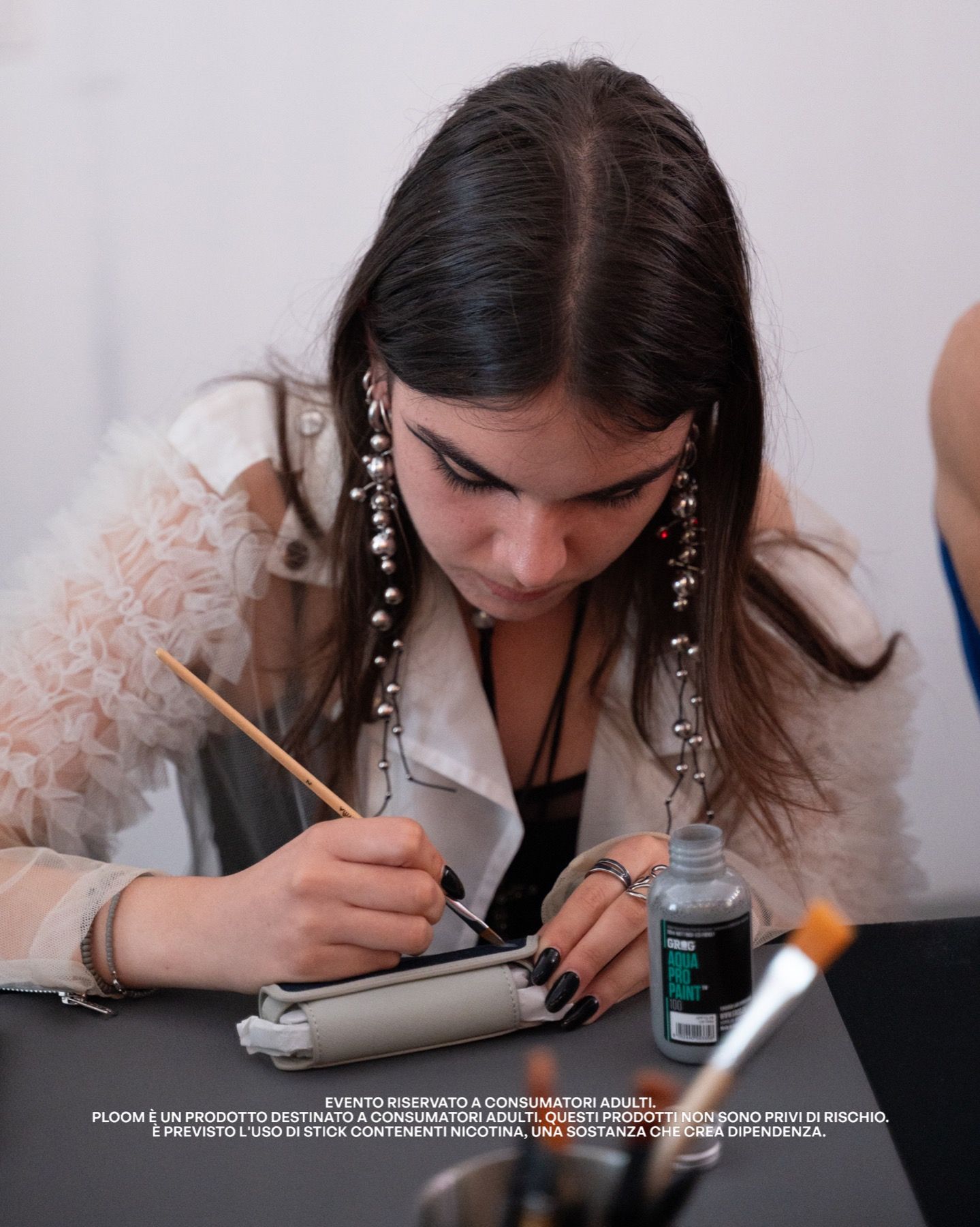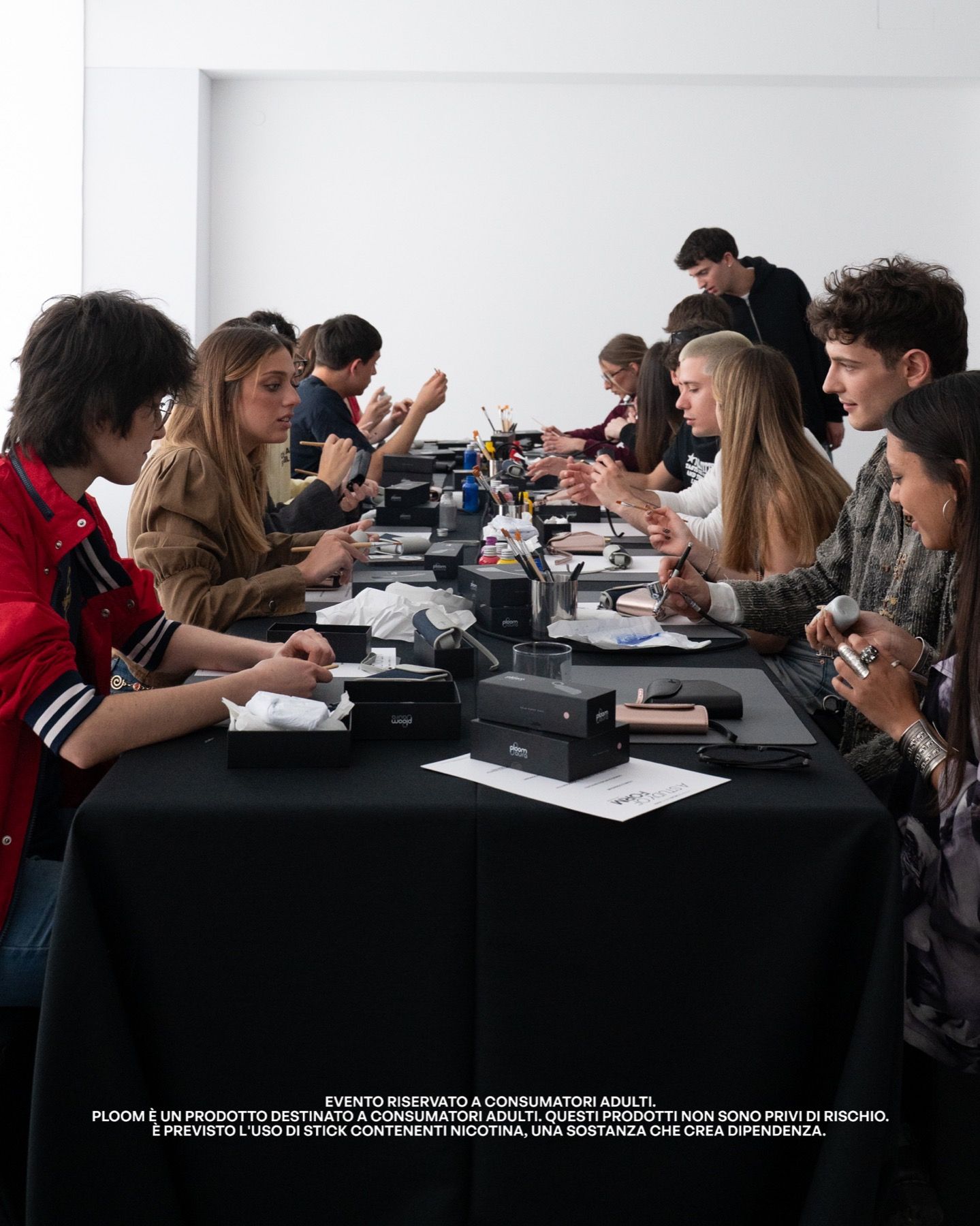Lorenzo Fioravanti has established himself as an artist capable of transforming every garment into a one-of-a-kind piece. His creative evolution, from his first customised denim pieces to collaborations with international celebrities such as Sfera Ebbasta and Kai Cenat, through to his creative partnership with Domenico Formichetti, tells a story of authenticity and innovation deeply rooted in Made in Italy. The final chapter of Ploom, A Study of Form, draws inspiration from the essential, modular and customisable language of Ploom*, exploring the relationship between form, experimentation and contemporary craftsmanship. The project began with an open call addressed to several design universities based in Milan, inviting students to reinterpret and personalise an accessory using different materials and creative techniques. The selected participants then took part in a live workshop led by Lorenzo Fioravanti, during which they were able to develop their ideas, transforming them into design objects.