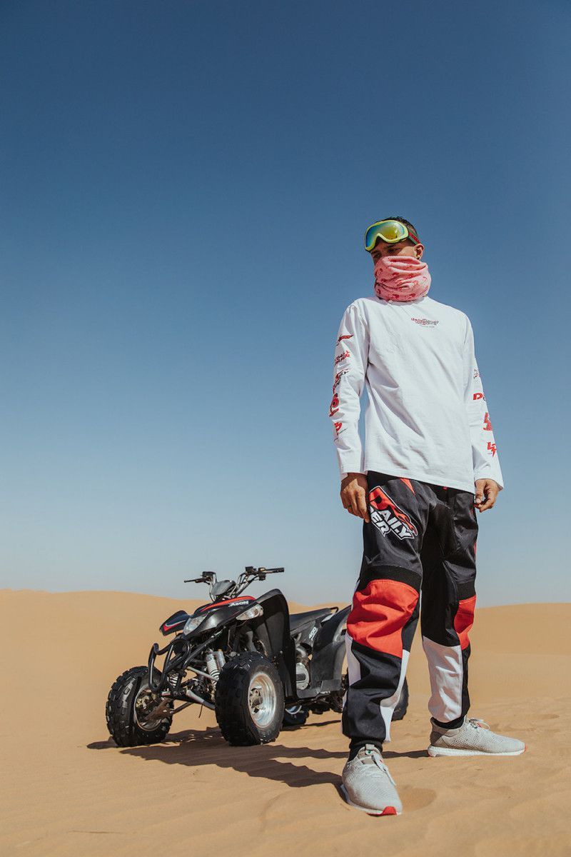 It was a very hot day in Milan during fashion week when we descended upon the One Block Down clothing store around the corner from Duomo, to celebrate the coming to town of the legendary producer and DJ, Loco Dice and the release of his new clothing collaboration with Daily Paper. A motocross bike collection which was inspired by an unfulfilled childhood dream of riding dirt bikes that now came into reality as a cool piece of merchandise and stunning lookbook shot on location in Dubai.