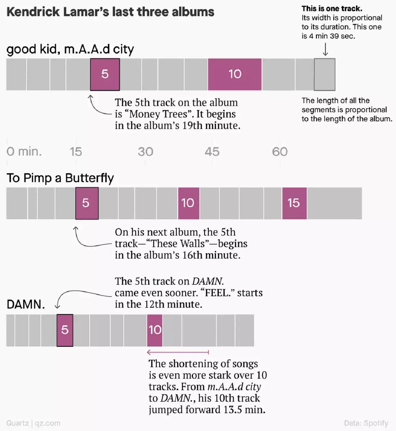 Between 2013 and 2018 the average duration of the songs in the Billboard Hot 100 ranking went from 3 minutes and 50 seconds to 3 minutes and 30 seconds, a figure that confirms a trend identified by many: pop songs (intended as popular) they are getting shorter and shorter. From NME to Pitchfork, the leading experts in the field have noticed the phenomenon that, now, an article published in Quartz analyzes in detail. According to the American website, the cause is attributed to the expansion of streaming music services. Yes, because, although some accuse us as guilty of the brevity of the songs our ever lower concentration ability or the need for a hit to be catchy and incisive to stand out in a landscape where the choice of consumers is almost endless, Spotify, Apple Music and similar are the real determining factor. After examining some of the works of the most beloved artists of the moment such as Kendrick Lamar (in Good Kid of 2013, M.A.A.D. City arrived at minute 19, while in Damn of 2017 the recording average is around 13 minutes) or Drake, irrefutable proof of the theory under discussion, to clarify our ideas better, Quartz explains the functioning of this service by tens of millions of paying subscribers in the world.