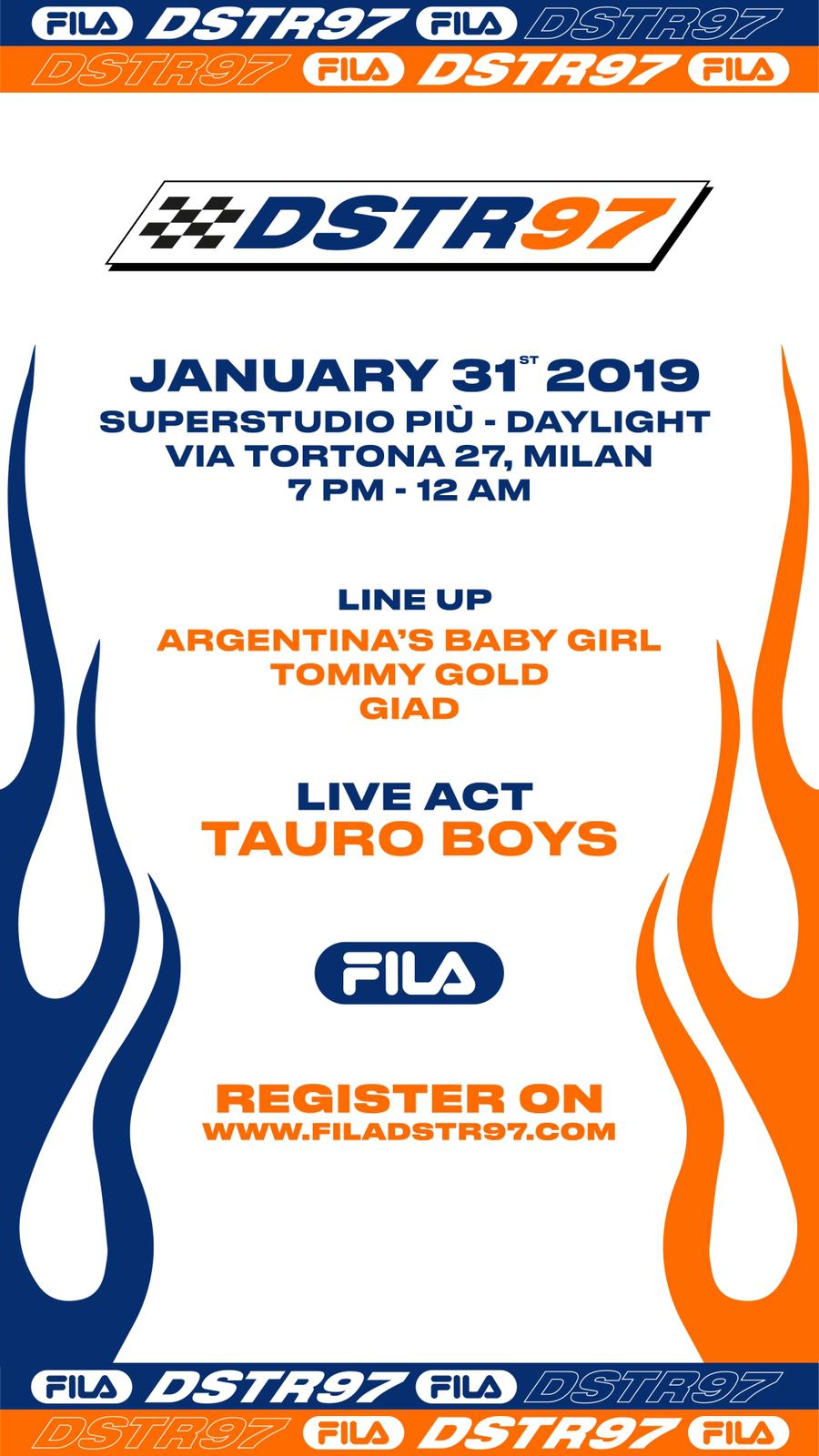 The FILA's night dedicated to one of the most iconic sneakers created by the Italian brand, will be shaken by a line up a DJs: Argentina's Baby Girl, Tommy Gold and GIAD.