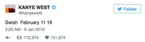 Kanye West's new album Swish has a release date Feb. 11, 2016