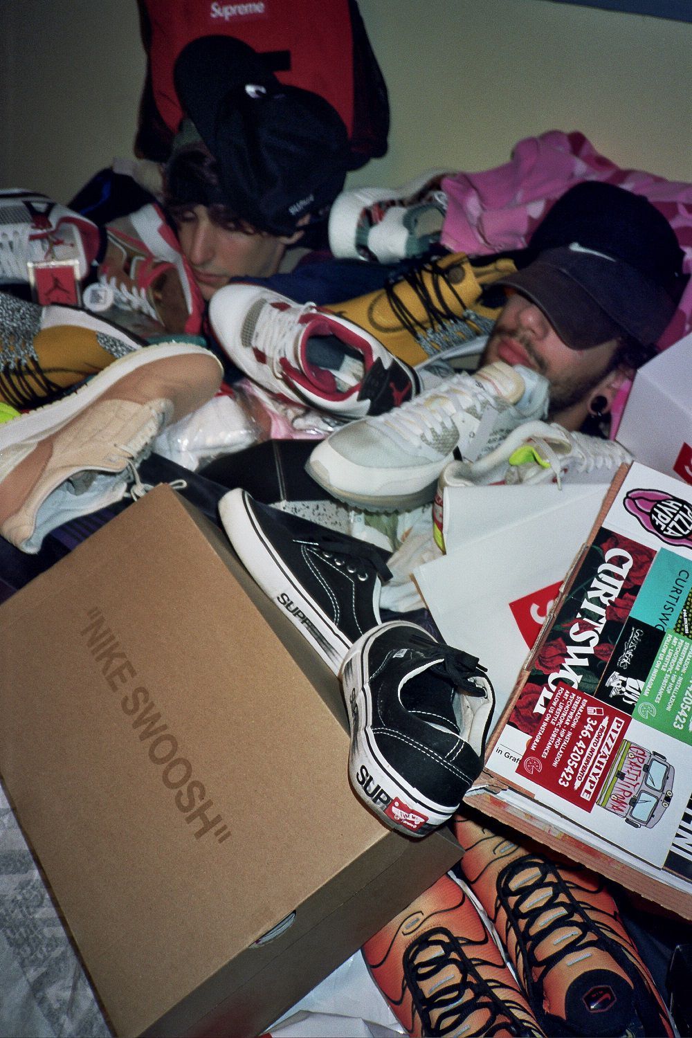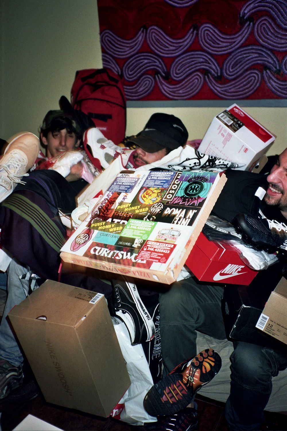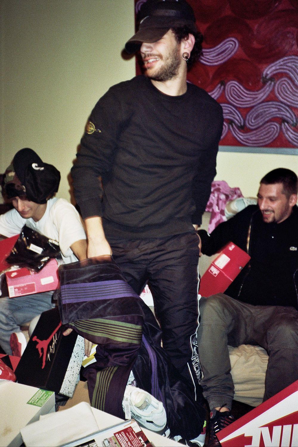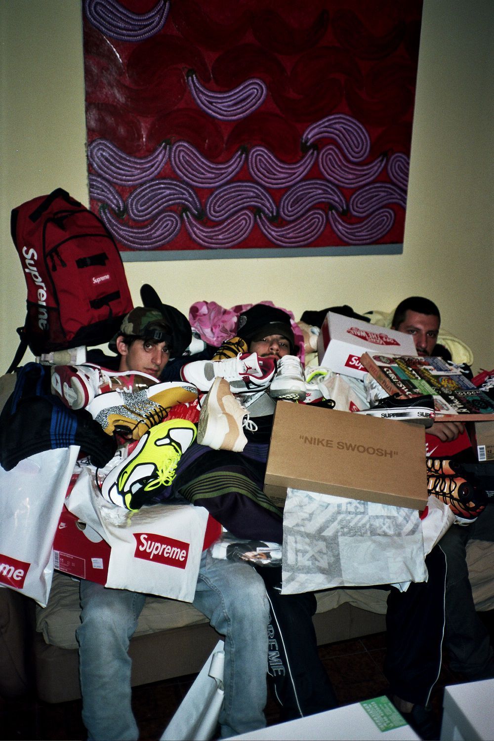 I am surrounded by some of the rarest and most hyped items of the season that literally invade the room. The three founders welcome me into their odd world. Their names are: Carlo Bartolomucci, Silvio Gianmarco and Alessandro Tanzi. They look totally different from the now-diffused reseller stereotype. They aren't wearing any hyped or expansive item to impress and the attitude they show is surely closer to punk than fashion. Irony is their way to talk about themselves and, even if they just came back from a long day at work, the first thing I can see on their face is a big smile. The guys deeply differ one from the other and any of them has his unique caratteristics and skills: Carlo is quiet, but has great leading and organizing skills, Silvio is charismatic and messy, Alessandro is the businessman of the team, always with money on his mind. Together they are able to bring the most absurd situations to life, yet they show a really strong energy that permeates the entire room. Pizza Hype in less then one year was able to become one of the most influential and recognizable reselling collective in Italy.
