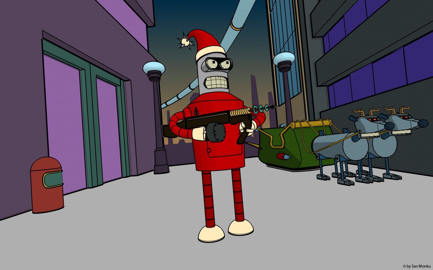 In the future Santa Claus is no longer a kind man with a white beard who brings presents, but has become a robot that sows death and destruction.