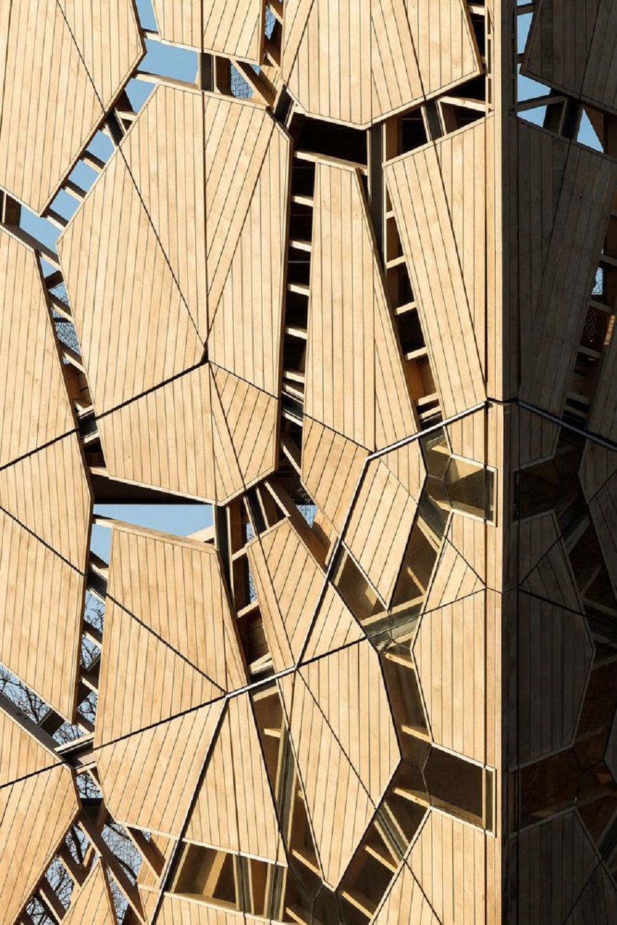 The façades were conceived starting from the mathematical principle of the Voronoi diagram, a principle of mathematical design, which allows the triangles of the steel structure to be used for windows and openings.