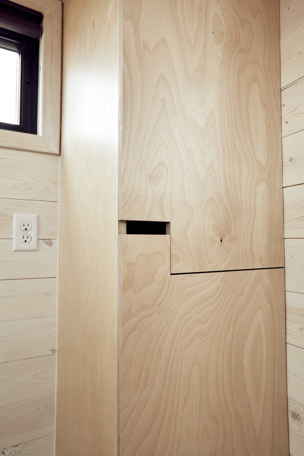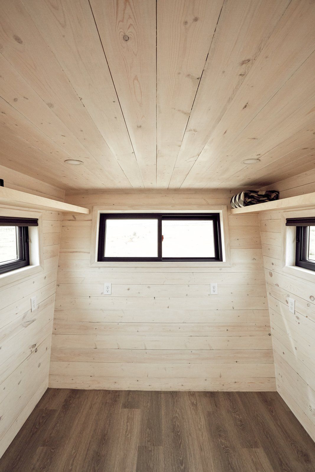 Some information on the materials. On the outside the Land Ark project is clad in black corrugated metal and insulated with closed cell foam. The interior is finished in white pine on the ceiling and walls, while the floor is vinyl.
