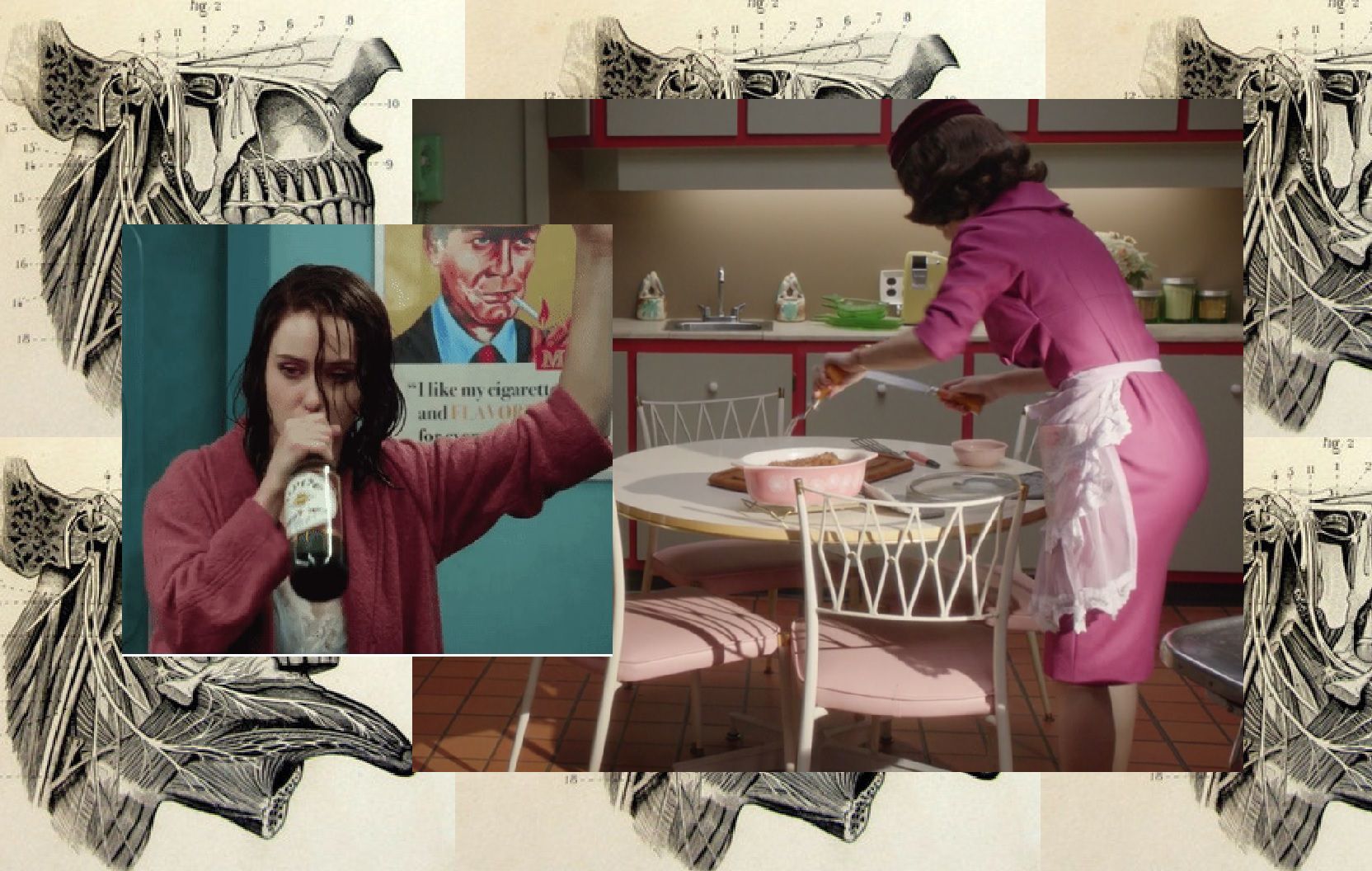 On an aesthetic level, all this translates into a rich tapestry of colors and silhouettes. The favorite colors of the young lady cocoon-like Cristóbal Balenciaga, low-waist dresses, suits, décolleté, but when she goes down to the Village she opts for black, trench, Capri pants, pencil skirts with pockets, dancers and headscarves in her hair. A more beatnik style that reflects the dichotomy between his life as a housewife and that of club goer.
