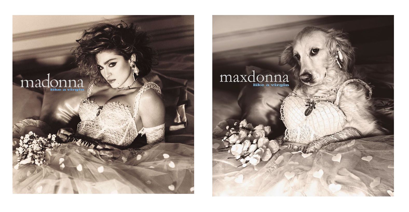 We're talking about Max, or perhaps more Maxdonna. This 6-year-old golden retriever dog managed to become an icon after being photographed in Material Girl style by the master-photographer Vincent Flouret. The fashion photographer did indeed "dress up" his best friend Max after being inspired by some of the most famous covers and images of the American pop star. The result? An ironic, funny but above all super fashion photo book.