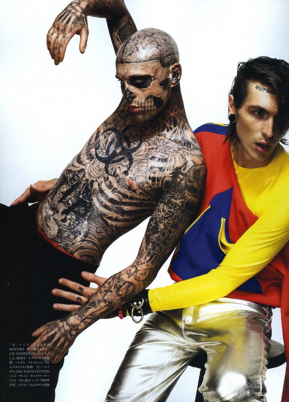 With these words of despondency and sadness, Lady Gaga announces on Twitter the death of Rick Genest, known as the Zombie Boy, the boy who shocked the world in the video clip of Born This Way showing his fully tattooed body. He had become not only a symbol of Gaga's music video but also a style icon, effortless fashion victim who naturally paraded on Mugler's catwalks, posed for Vogue Japan and presented his face as a testimonial for L'Oreal and Vichy's Dermablend collection.