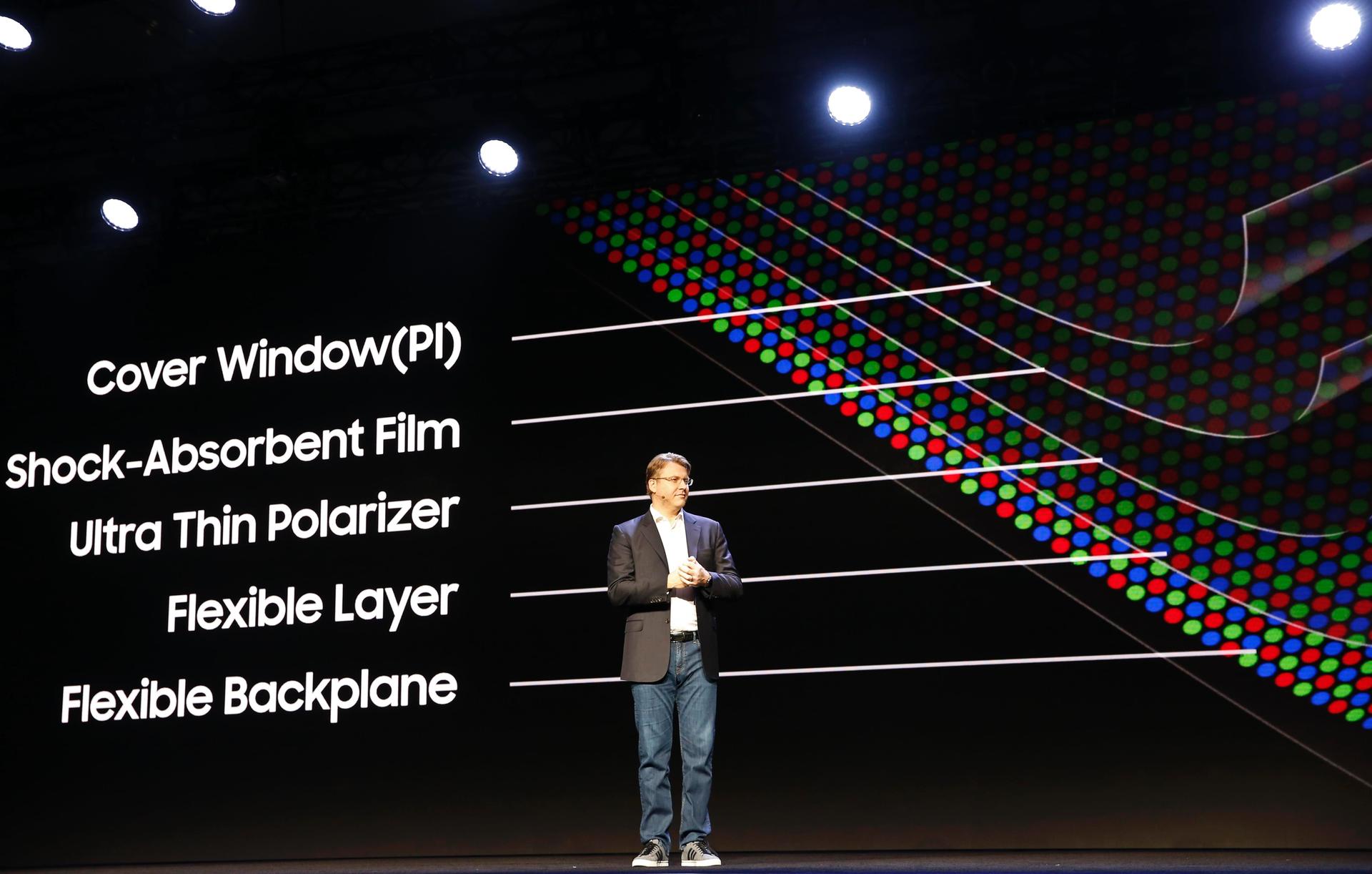 Wednesday, November 7, in San Francisco, During the company's developer conference, Samsung showed a preview of its new folding-screen phone. Already announced for some time, "Infinity Flex Display" is a hybrid between smartphone and tablet, with a folding that allows the device to go from the maximum size, with an open screen, of 7.3 inches with a resolution of 2152x1536, to the minimum, when closed, of 4.58 inches with resolution 1960x840. From the Moscone Center stage Justin Denison, one of the vice presidents of Samsung in the United States, explains, without going too far into the technical characteristics, that the new product will use the Android system and will be able to run up to three apps simultaneously, thanks to a multi window active. Denison declares that the company will be able to start mass production of Infinity Flex Display in a few months, but does not specify exactly when or provide news on the price of the smartphone that, according to rumors should cost over 1000 euros.