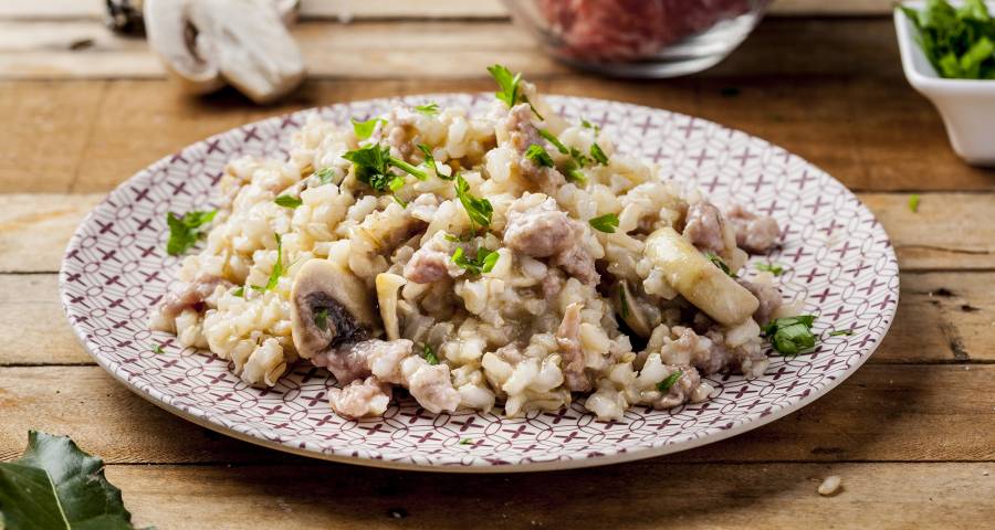 A typical Milanese dinner in the style of the classic county fair. A traditional but timeless menu: bread with salami and gorgonzola, risotto with sausage and gorgonzola, schnitzel with French fries. Diet starts tomorrow.
