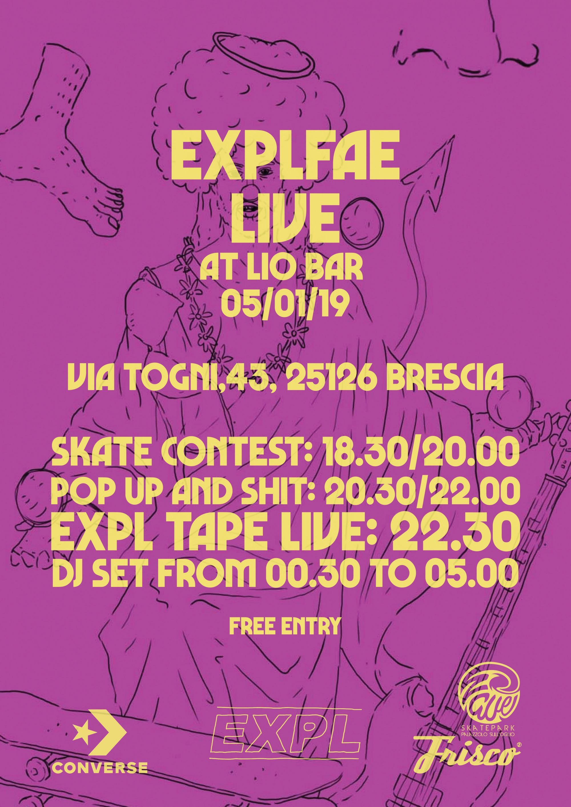More than just one night, an entire day that starts with a skate contest, continues with a pop-up, culminates with the live performance of Explfae collective and ends with a dj set that will last til the morning. Are you ready?