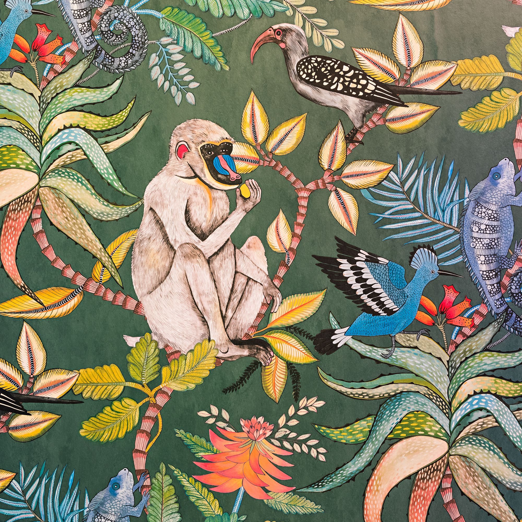 An exotic and sensory journey, which starts from Botswana and the lush garden with baboons and chameleons, depicted on the walls of the second room. The attention to color is total and culminates with a touch of Millenium Pink.