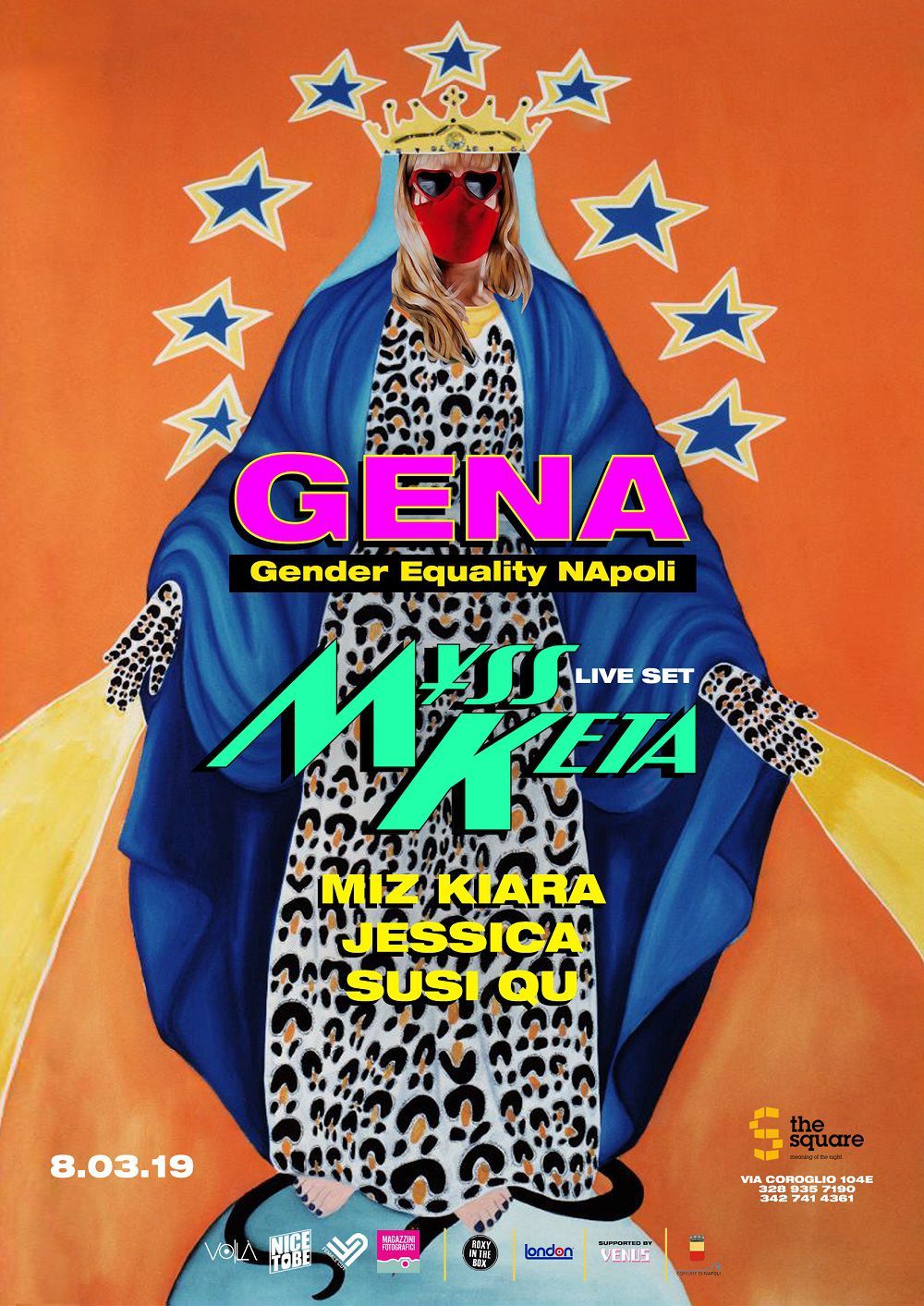 The event, organized by Female Cut, Nice to Be, Warehouses and Voilà, will be divided into two parts: from 6.00 pm to 11.00 pm the GENA EXHIBITION will be held in the Magazzini Fotografico, while from 23.00 to 05.00 we will move to The Square (in Via Coroglio 104E, admission 10 euros) to watch the live performances of MYSS KETA, DJs and artists and to admire the artworks "La Madonna Mmaculata" by Roxy in the Box, photographs by Elda Volpe and works by Arianna Paccone.