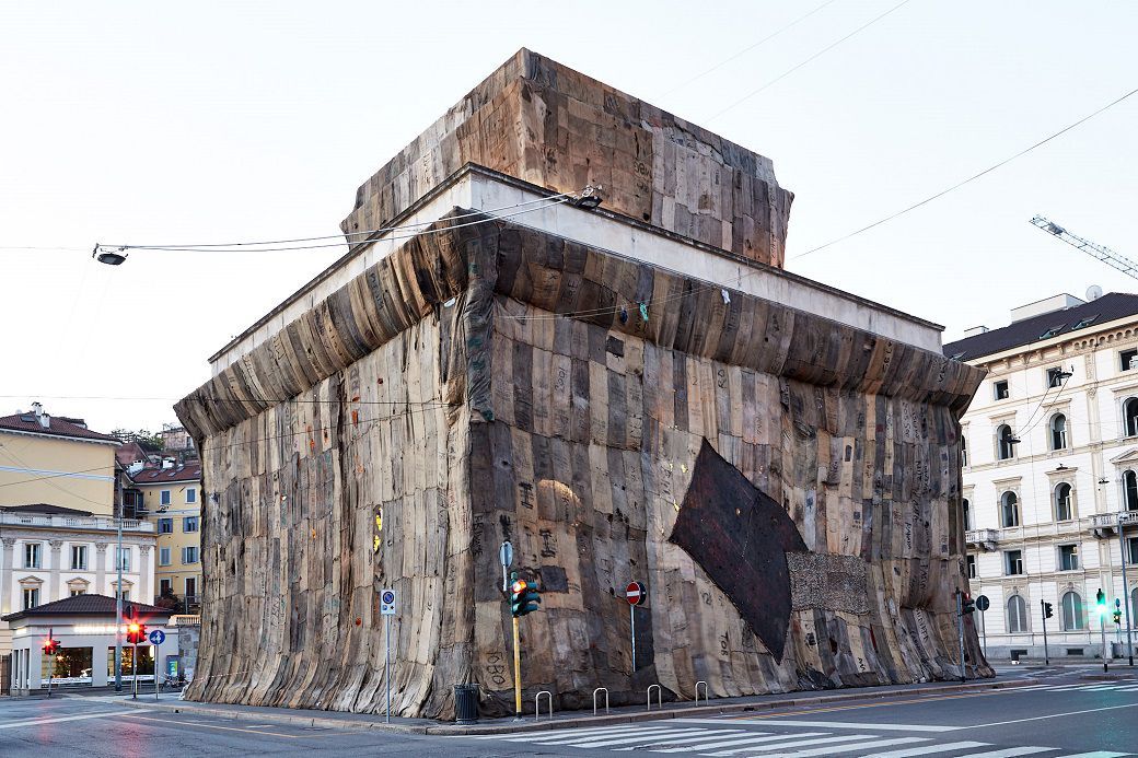 Installation by Ghanese contemporary artist Ibrahim Mahama in Porta Venezia.