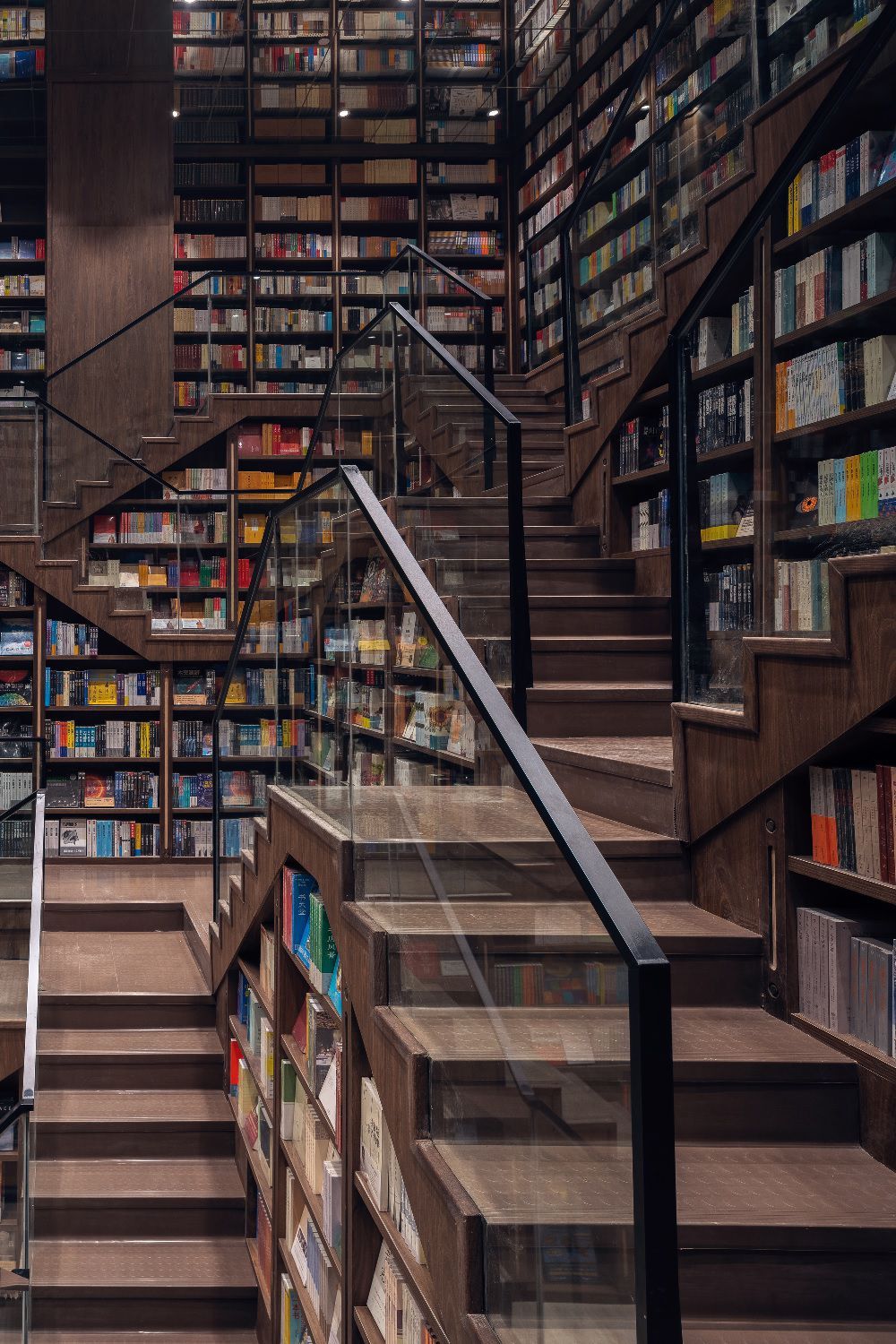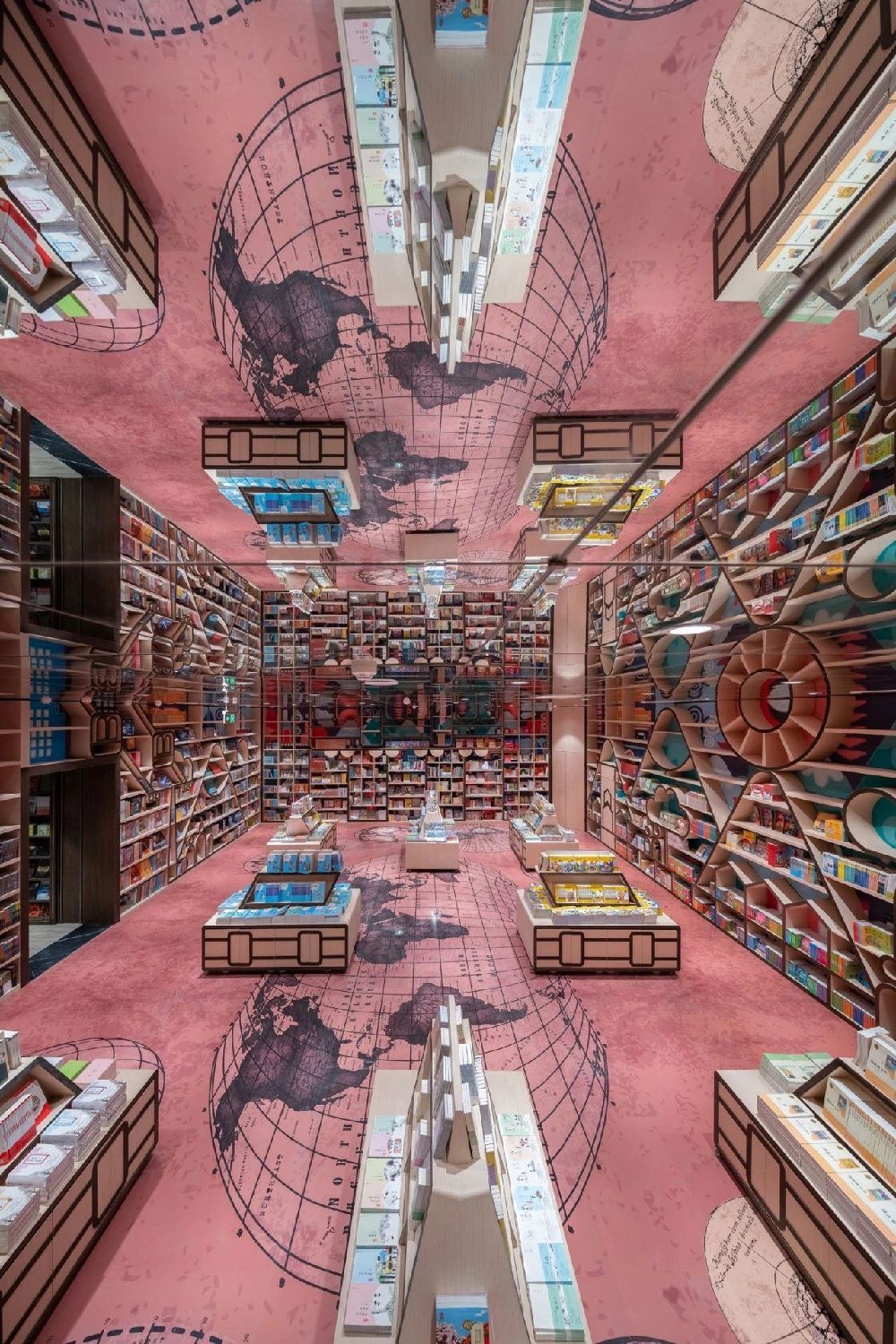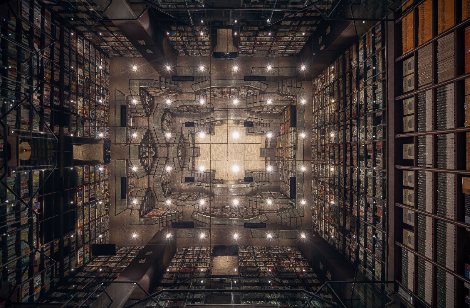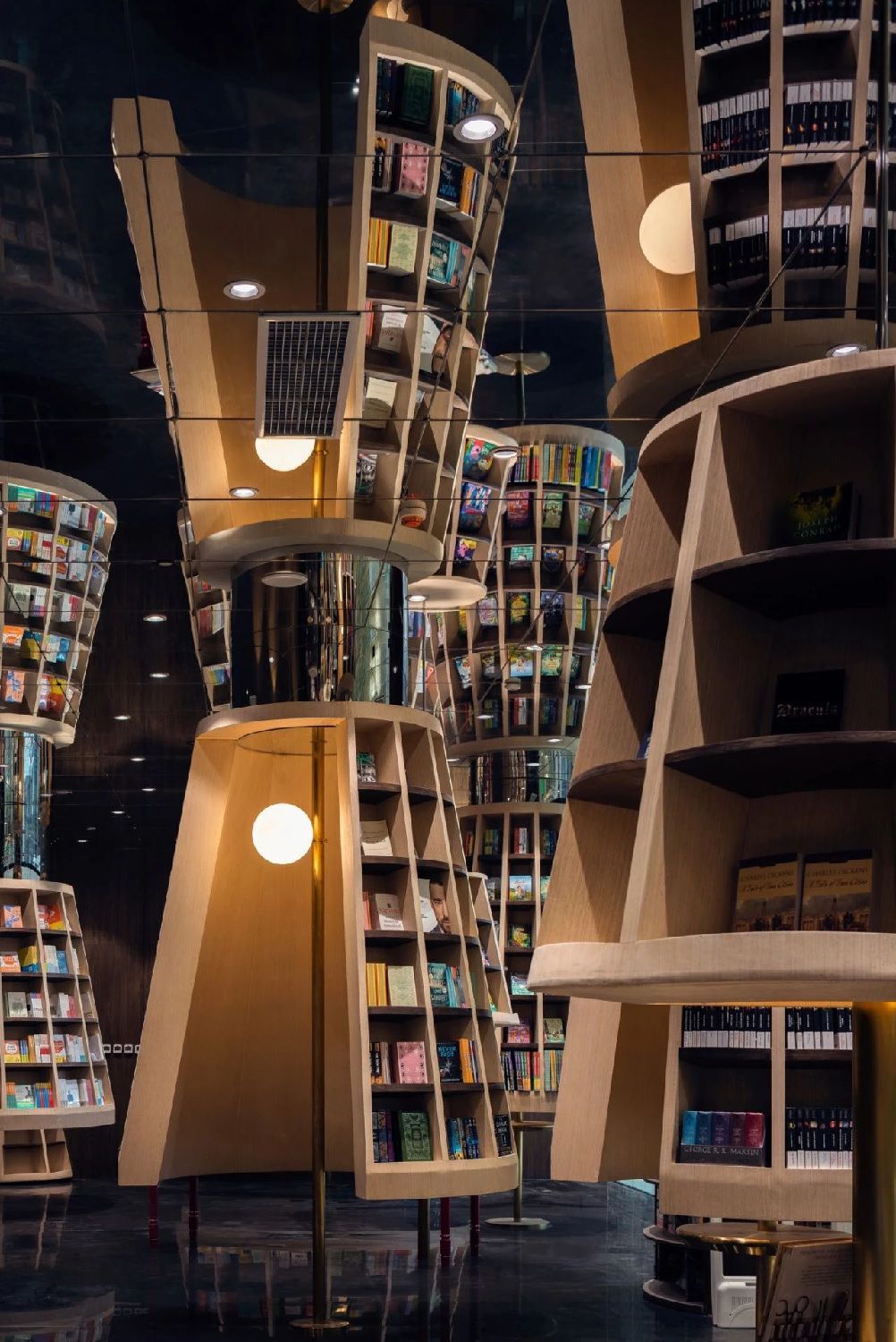 China continues to amaze with its unique architecture. This time we are impressed by a beautiful and unusual bookshop located in Chongqing, a city in the southwest of the country, located at the confluence of the Blue and Jialing rivers, which is considered the largest metropolis in the world. Here, on the third and fourth floors of the Zodi Plaza, the X+Living studio has built a unique space that seems to have come out of the creative genius of MC Escher. The team of architects recreated the same impossible perspectives, made up of stairs, shelves and mirrors that give the optical illusion of an infinite labyrinth. A series of mirrors positioned ad hoc and an entrance hall designed as a single double-height environment guarantee, in fact, the hypnotizing and surreal multiplication of a multitude of stairs and shelves, all made in warm tones of wood, where the only stains of color are given by the thousands of books on display. Beyond these elements, all the other furnishing accessories are made of transparent glass. Another peculiarity of this bookstore are the "lampshade shaped shelves" that are scattered throughout the lobby. These are cabins where visitors can gather with friends to enjoy reading and enjoying their free time. In a corner of the lobby is a children's reading room full of colourful shelves depicting landscapes, buildings and transport in Chongqing. The Chongqing Zhongshuge welcomes visitors with an atmosphere reminiscent of the set of a science fiction film in which a tunnel of books seem to lead to knowledge, including fantasy stories, mathematical theorems, philosophical treatises and all the knowledge enclosed within the walls of this extraordinary building.