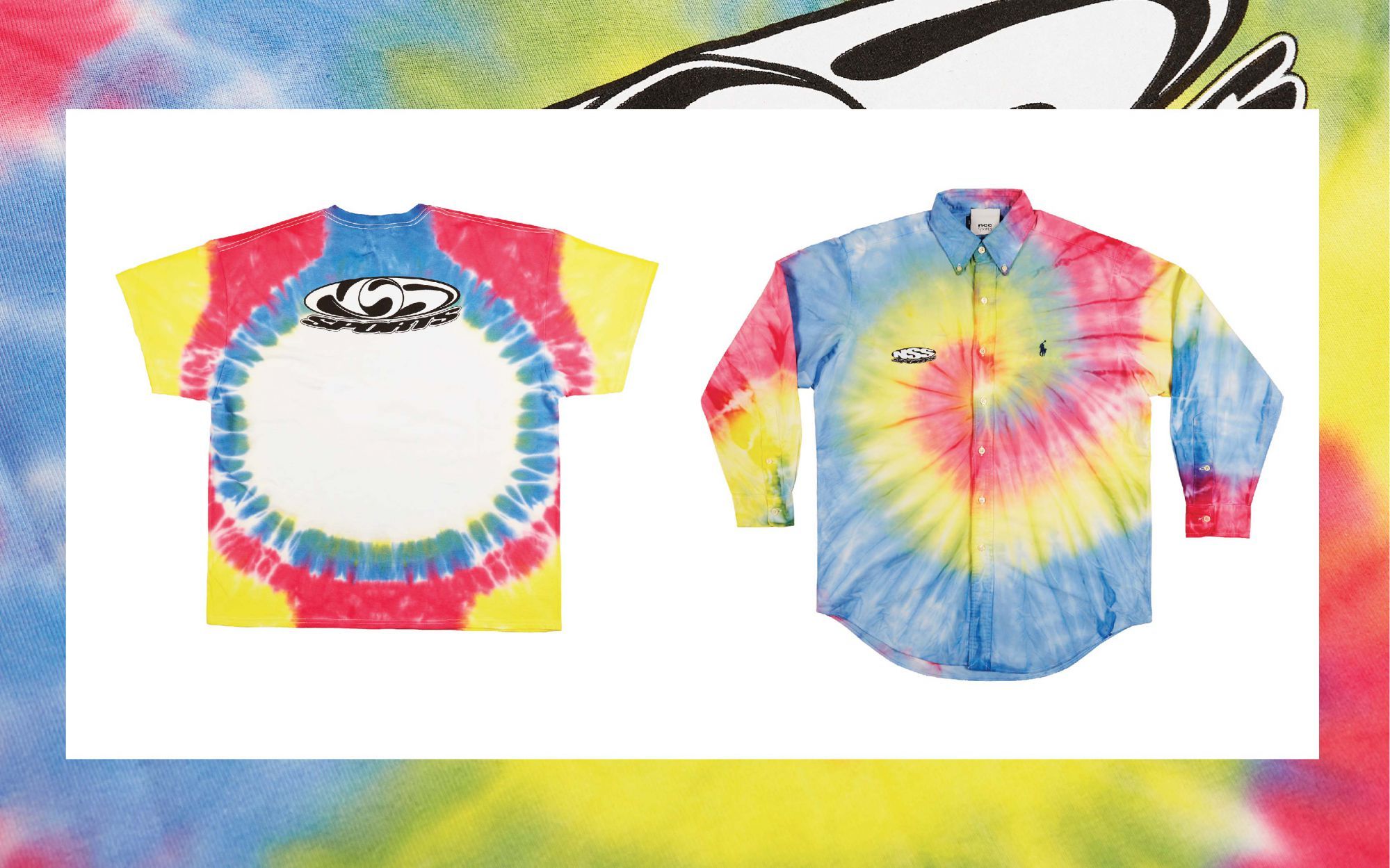 Summer vibes in the new Tye-Dye drop by nss sports. A collection of 6 unique new items, handmade with a custom logo made by Japanese designer Gucci Maze. Two tees, three models of Botton-Down shirts and one long sleeve to turn the string of black clothes you still have in the wardrobe.