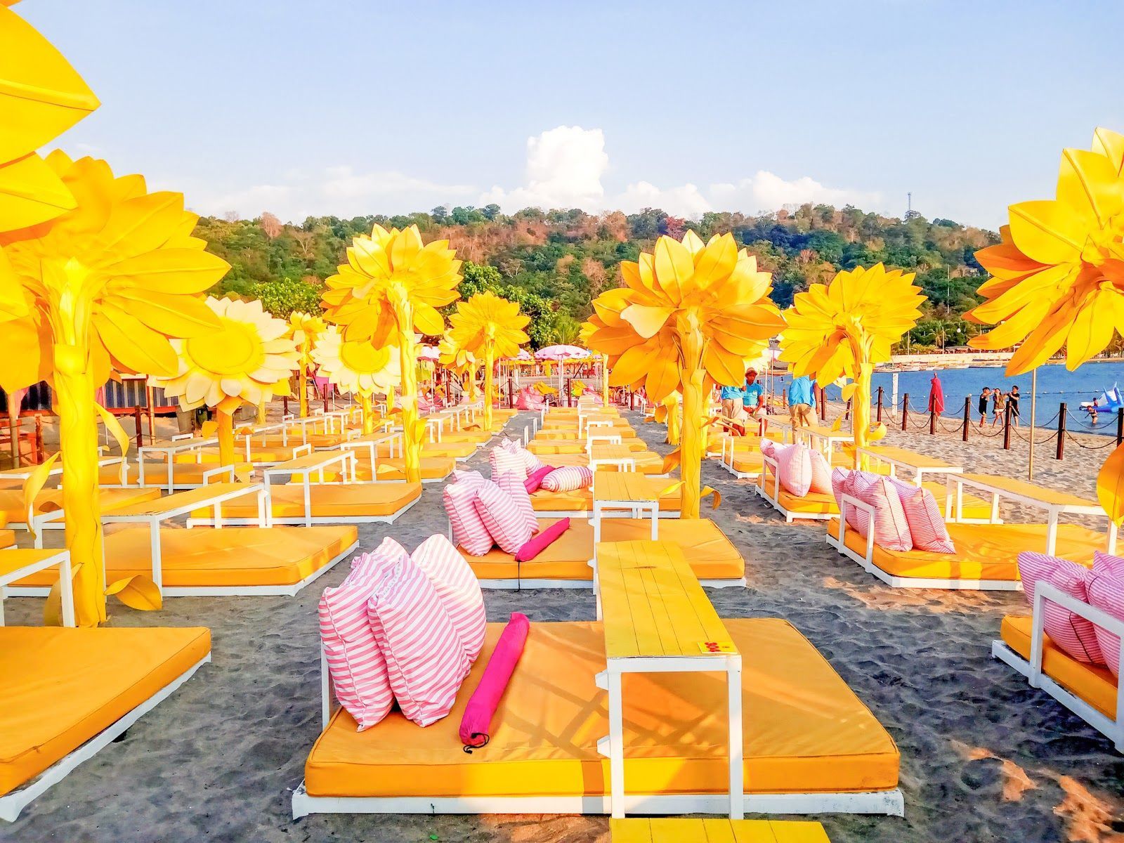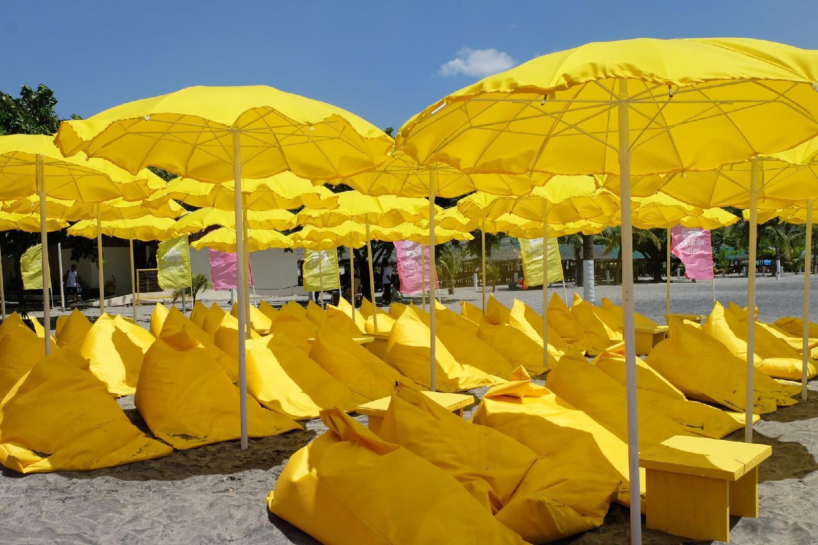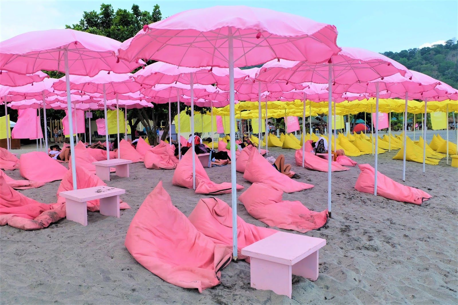 In addition to Subic Bay, Inflatable Island is also located in another part of the Philippines, Cebu. The differences are few: in the second location there is no Unicornzilla, but the beach, called Happy Beach, is even more Instagrammable with its colorful palm-shaped parasols (obviously inflatable!) and pastel color details.