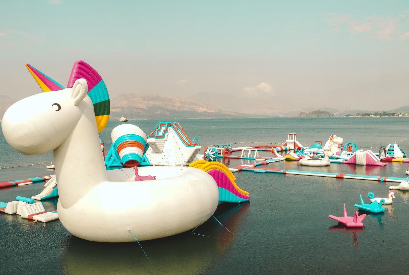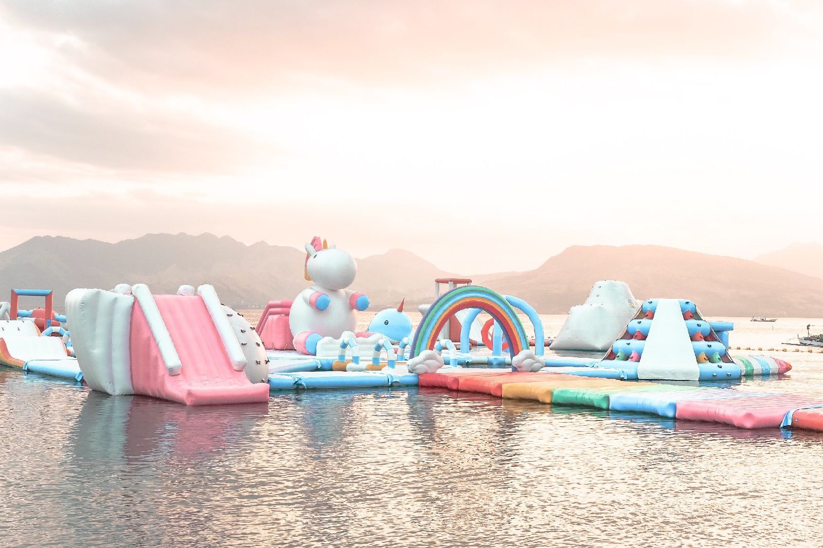 Is there anyone who can resist sweet and colorful unicorns or rain of pastel shades? Looking carefully at the profiles on the various social media, the answer seems to be: no, no one. Well aware of this irresistible attraction, we recommend the ultimate destination for your holidays: Inflatable Island. Located in the bay of Subic, in the Philippine region of Zambales, it is the largest Asian water park. With its 4200 m², it is as big as 8 basketball courts put together and contains inflatable slides, towers, bridges, swings, and a record-breaking unicorn. Unicornzilla (Baba for friends) is the new attraction of the park and one of the largest inflatable floating unicorns in the world that can hold 50 people altogether. Its tail is a slide from which to launch to take a dip in the water.
