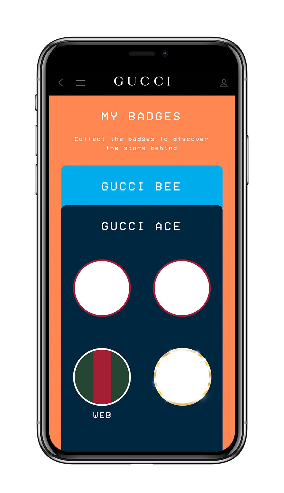 Both games are accessible from a map on the Gucci App, where each step of the journey leads players to a different game. This pathway tells the story of the House through its codes, in the form of badges hidden in the games and grouped together by theme. Players can collect and place them into a special trophy showcase. Once games are over, users can see their rankings to discover where they sit among high scorers worldwide. Results and badges can also be shared on all social networks and instant messaging platforms.