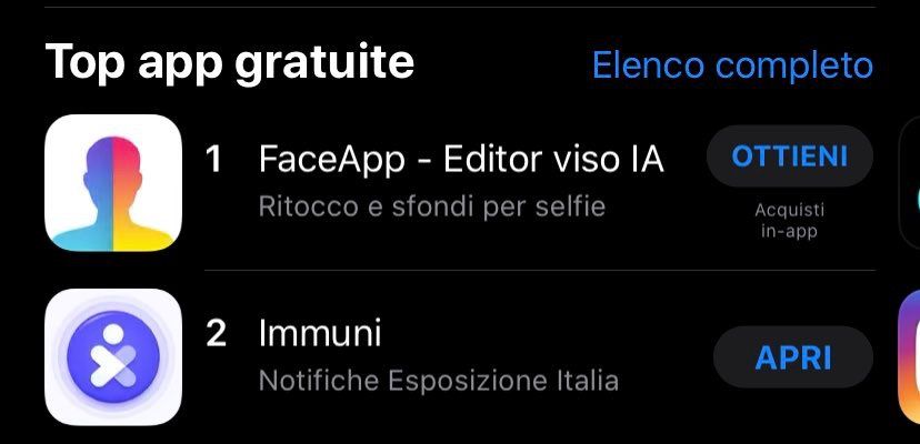 The mechanisms that regulate the sharing and archival of personal data are still not clear to most people. Still, the comeback of FaceApp - that was effectively a dead app - couldn't happen in a more critical moment: right in these days, the public opinion is discussing the privacy of personal data referring to the latest sanitary apps as Immuni, designed after the COVID-19 emergency. Fun fact: FaceTime and Immuni are respectively at #1 and #2 on the App Store's Top free apps list.