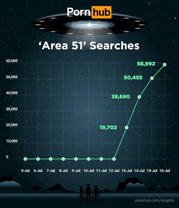 Roberts also explained that he was inspired to make the page after watching an interview with physicist Bob Lazar who claimed that he worked with an alien spacecraft while being employed at the Area 51 facility. However, after the page gained popularity, he soon became scared, “I just thought, the FBI is going to show up at my house and it got a little spooky from there,” he said. In response to the rumoured raid, the US Air Force told the Washington Post that the Area 51 is “an open training range for the U.S Air Force, and we would discourage anyone from trying to come into the area where we train American armed forces.” Despite this serious response, the facebook page has still remained and many people from the internet have still been scheming to move forward with the raid later this year. Some people have taken it seriously, creating actual maps of the area and what areas to enter from, scheming to meet at an Area 51 tourist centre nearby, while others have found it funny, resulting in a wave of memes on what will happen post and pre-raid if we come in contact with aliens. This week, Pornhub even released a survey showing that searches in Area 51 and "alien sex" has skyrocketed massively within the past two weeks, which shows that people are definitely taking this way too far.