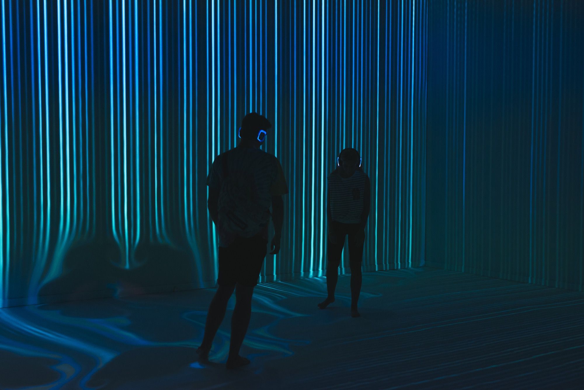 One of the main attractions of the festival was definitely Desigual space, entitled Desigual inBeta, a creative oasis intended to be a journey that you could take in your own way. Artist and body painter Claudia Sahuquillo welcomed the visitors at the entrance to Desigual inBeta with her army of body painting artists, all of whom were painted in neon colours which reacted to the UV light. Through a corridor of UV lights and mirrors, visitors were able to reach the revelation tunnel, a piece by Onionlab. After this individual experience, they arrived at the collective canvas of colour, light and sound, also designed by Barcelona-based studio Onionlab. An interactive and immersive space with light and images controlled by the movements of the visitors, which created an array of stunning colours and shapes. The piece combined a mixture of technologies including projection, lasers, cameras, motion sensing, real-time graphics, biometric sensors, immersive visuals and LED lights. Each user was given headphones at the entrance which let them play with a soundscape that could be modified through their own movements. Three times a day, visitors could also enjoy sessions of SUCO: active meditation through dance and movement to the sound of music curated by Portuguese artist Branko.