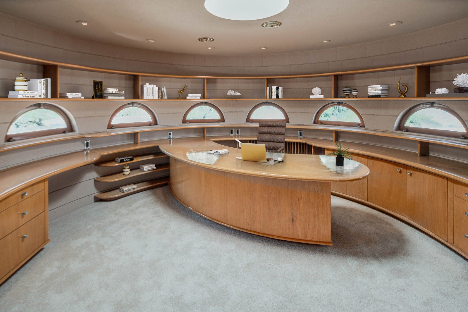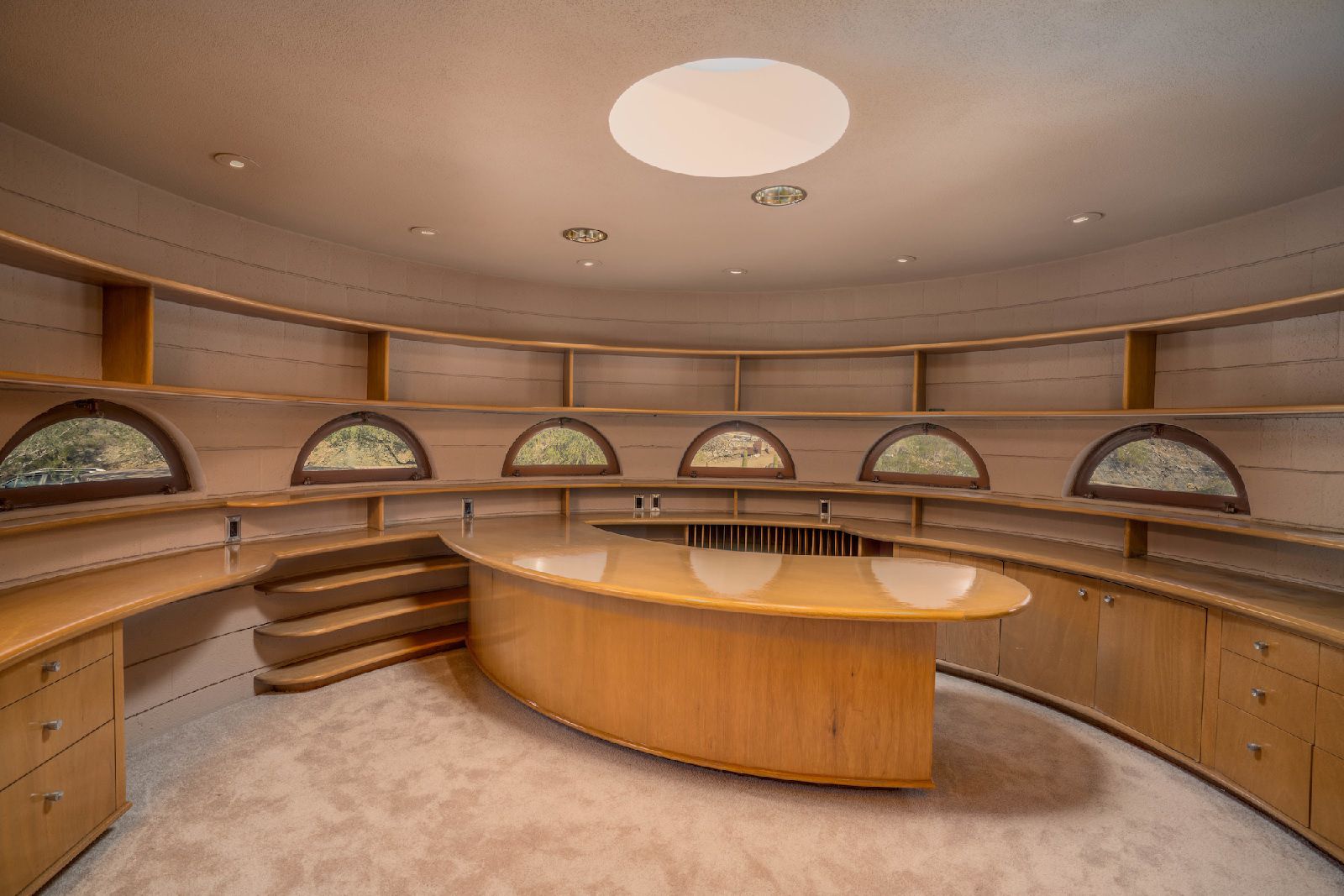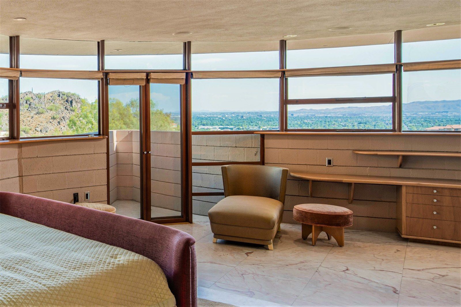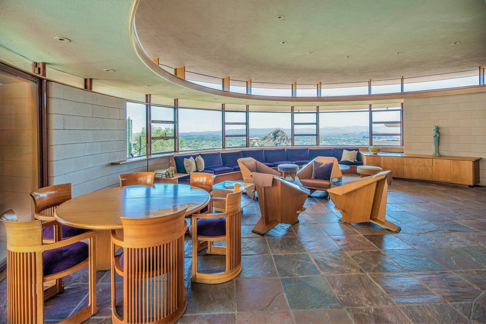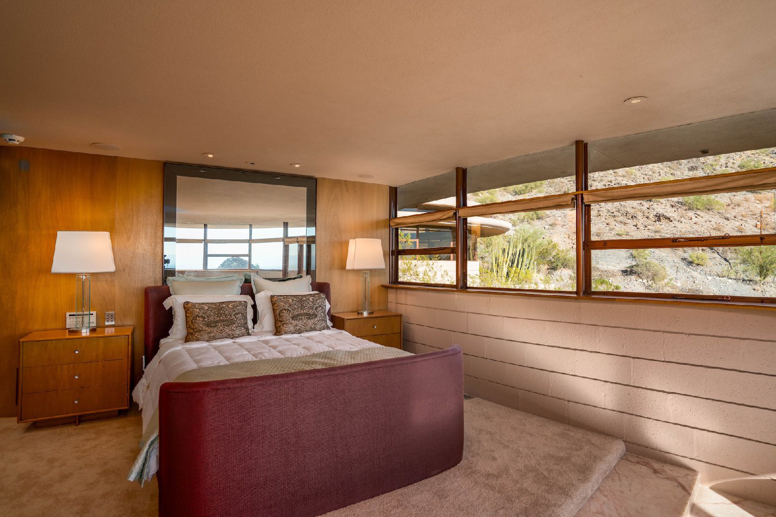 The sun always shines on Paradise Valley, a desert oasis nestled between Camelback Mountain, McDowell Mountains and Phoenix Mountain Preserve. Right here, set between the canyons of Arizona, is the latest work by Frank Lloyd Wright. Known as Norman Lykes House or Circular Sun House, the residence is characterized by its shape composed of a series of circular elements that fit perfectly into the topography of the landscape. Wright designed it in 1959, a few months before his death in April of the same year. Built in 1967, it was later renovated by his apprentice, John Rattenbury, in 1994. The original project, a repetition of arches and circles, featured a structure of colored concrete blocks shaped in this way to merge with the rocks that surround it and to emphasize the impression that the mountain embraces the house. The building's eye-catching futuristic design has an area of approximately 3000 square meters, a space that includes 3 bedrooms, 3 bathrooms, a private office on the second floor with a 360-degree view and a garden terrace with a swimming pool covered in mother-of-pearl. The second owner of the building has made some changes to the archistar's concept such as, for example, reconfiguring the bedrooms, cutting the number of bedrooms from five to three, transforming the workshop into a media room with a home theater and reducing the dark wood interior cladding of the walls. The furniture remains entirely handmade in Filippino mahogany. The most important element, in addition to its architecture, which makes the villa unique, is the breathtaking view of the canyon.