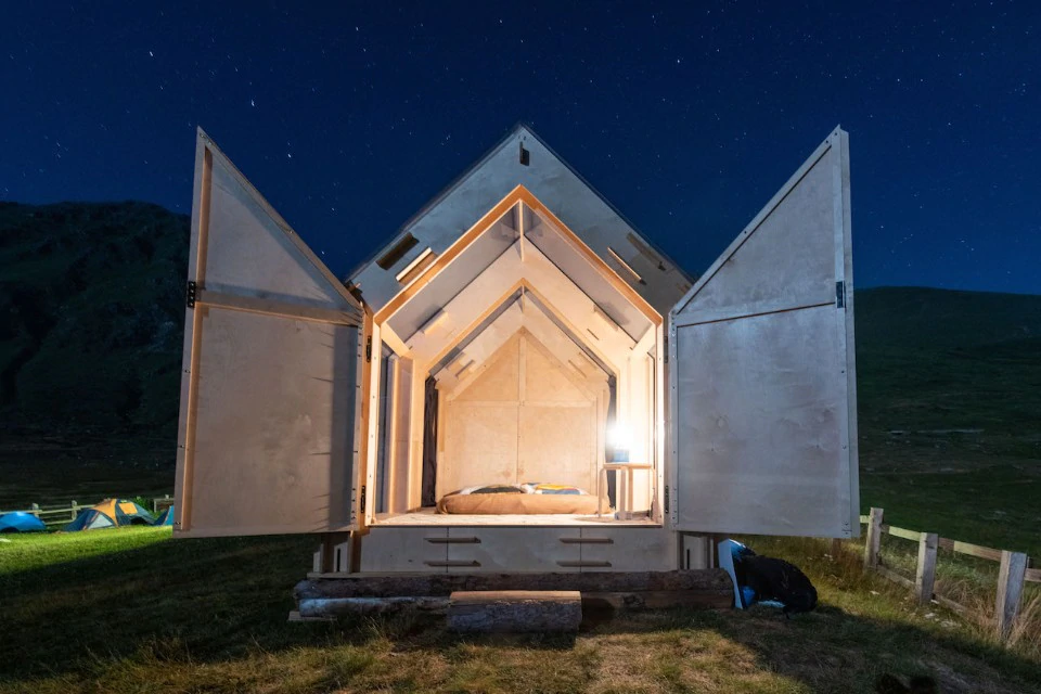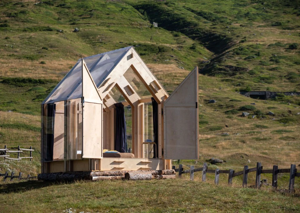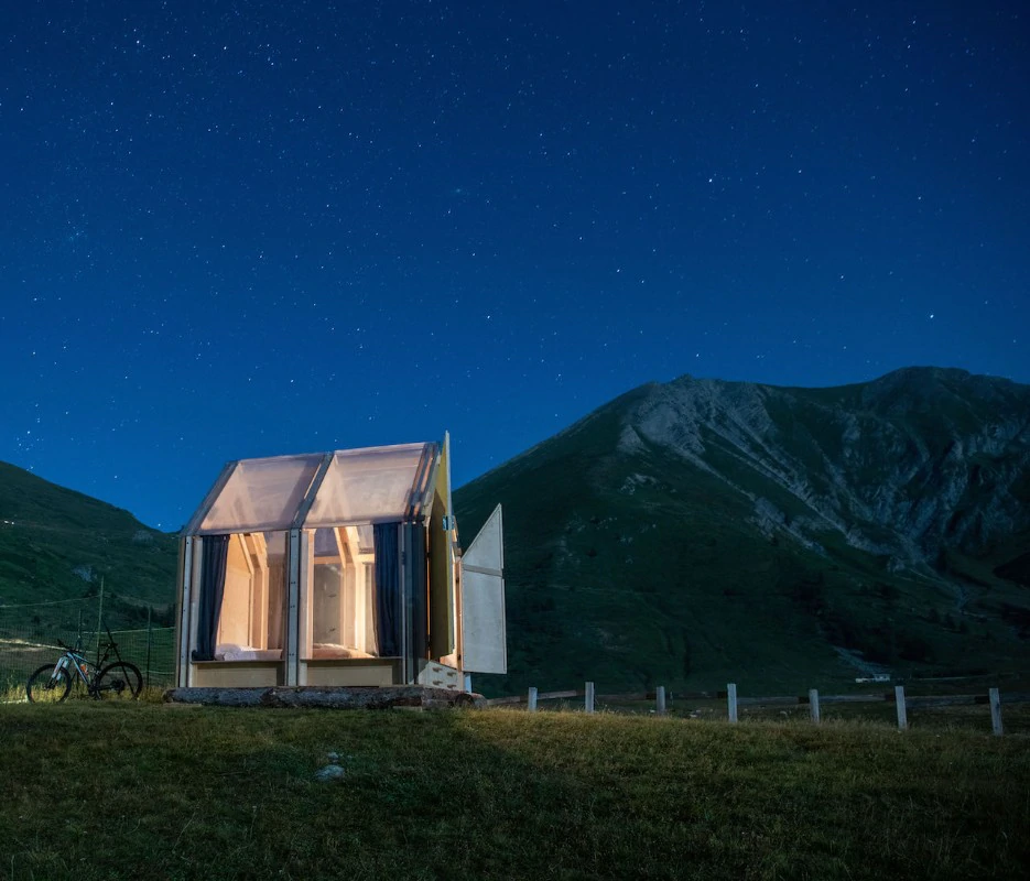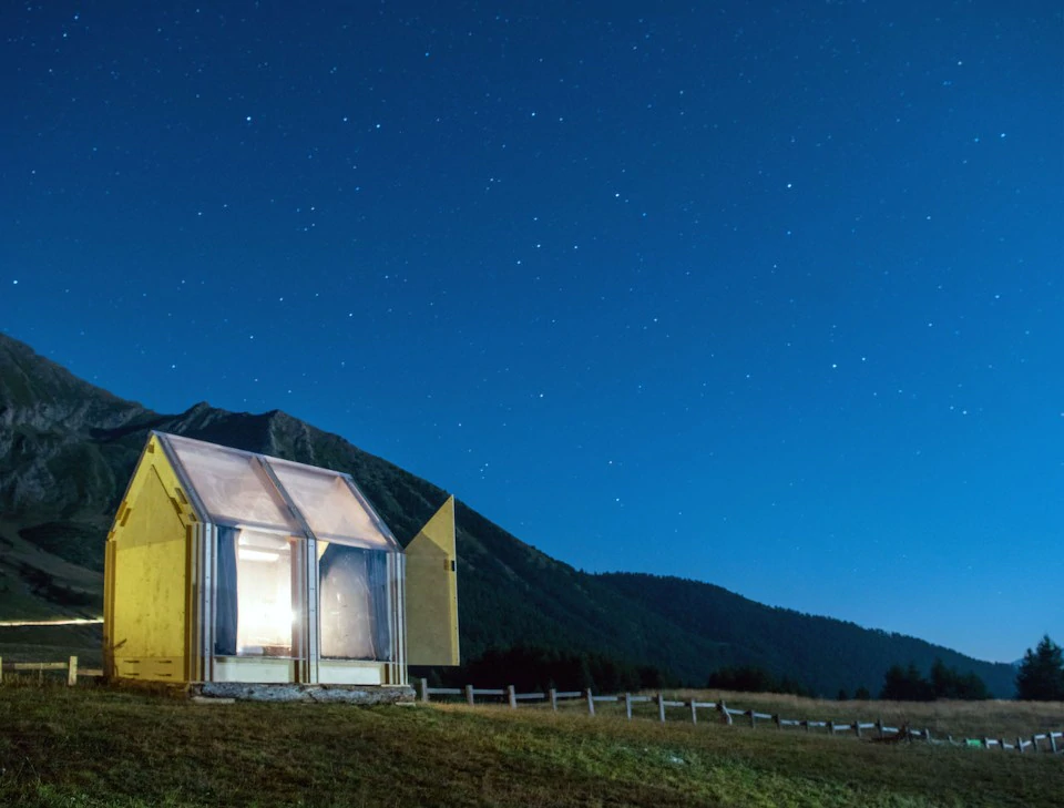 A holiday in the midst of nature, sleeping under the stars, in harmony with the surrounding landscape, but with all the comforts. The most recent trend for contemporary designers is a housing solution that perfectly combines these elements. Francesca Turnaturi and Fabio Vignolo did it with Immerso, an advanced prefabricated model with an interesting and eco-friendly design. The idea was to create a temporary shelter that was easy to assemble and adapt to different locations and functions, becoming, if required, a shop, a mountain shelter, a glamping tent or a space for tasting wines in a vineyard. The young duo of architects from Turin was inspired by the Veneer House by Professor Hiroto Kobayashi of Keio University in Tokyo and AccuPoli, a multi-purpose centre built by the Help 6.5 association (founded by the architect Lorena Alessio with a group of former students from the Polytechnic of Turin) in the homonymous town in the province of Rieti after the earthquake of 2016. The result is a structure similar to a small hut, designed to contain only a bed plus a few luggage and made entirely of interlocking phenolic birch plywood and transparent panels in Lexan. As Turnaturi and Vignolo say, the real characteristic of Immerso is "the extreme ease of assembly, even by inexperienced operators and without the use of electric tools". In fact, it takes just 2 hours and 4 people to assemble a module of about 6 square meters.