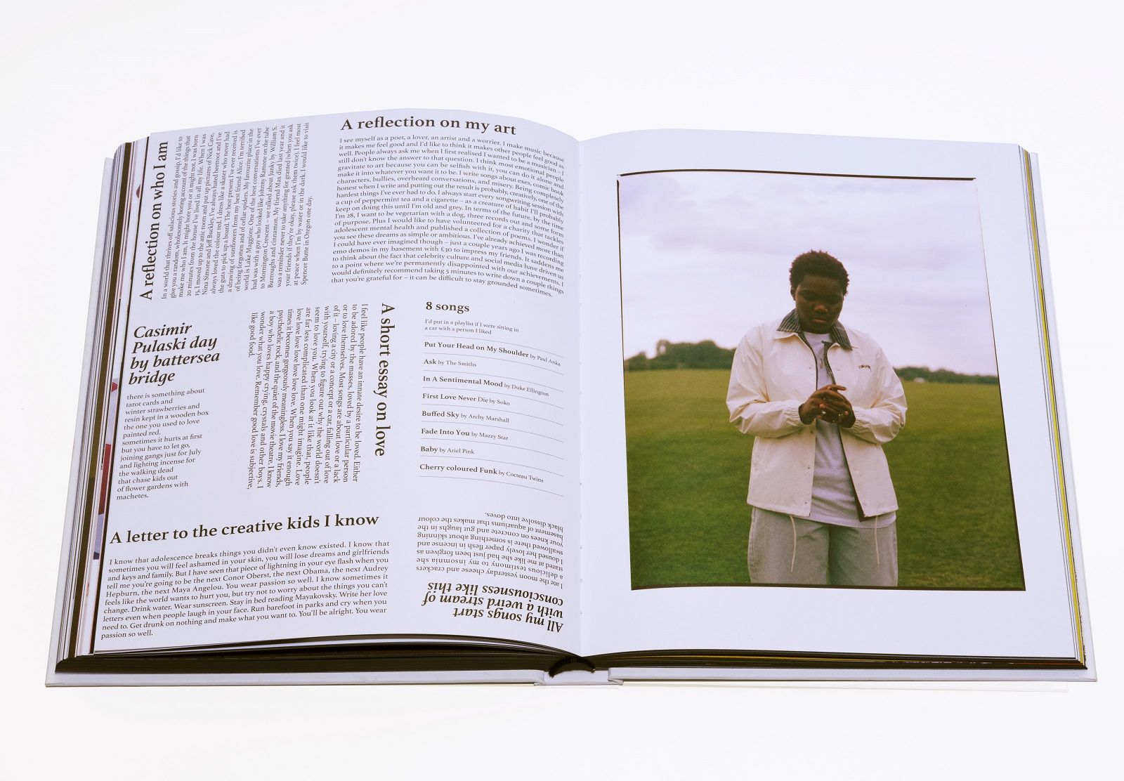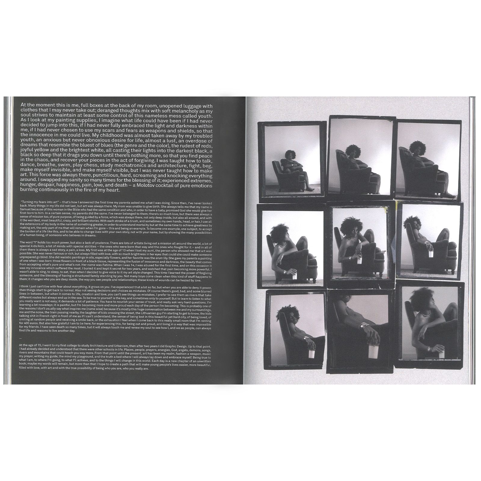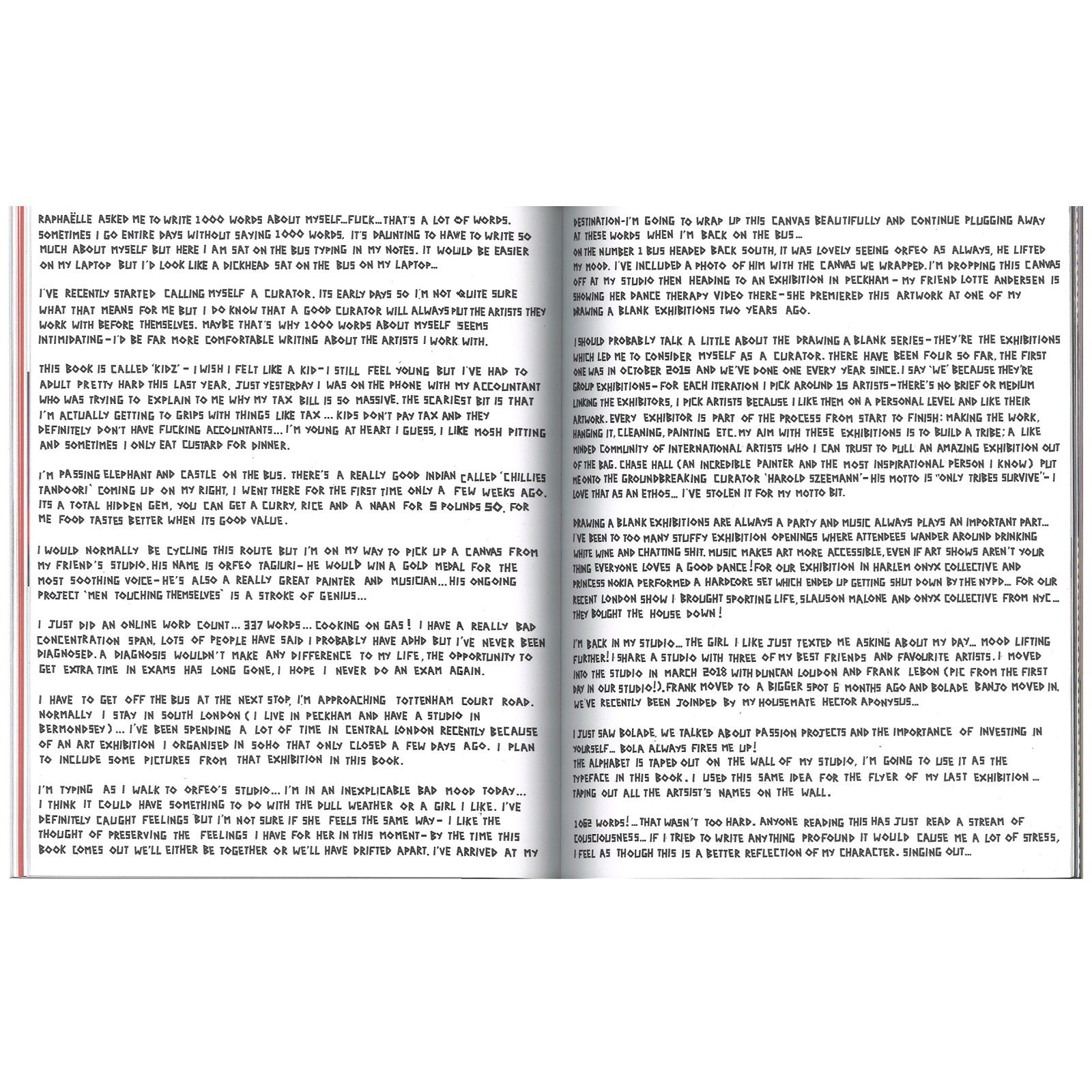 The project started in 2017 when Raphaelle had the idea for a book about the creatives of her hometown. With the help of her childhood friend, she self-produced KIDZ Paris, a selection of 25 young Parisian portraits, sold at Colette's concept store. Two years later, the adventure continues, reaching international markets and increasing the number of artists. From Athena Paginton to Aidan Cullen, from Samuel De Saboia to Ben Broome, each of them has a double blank page, a real white canvas where they can express everything they want, together with a text written in the first person.