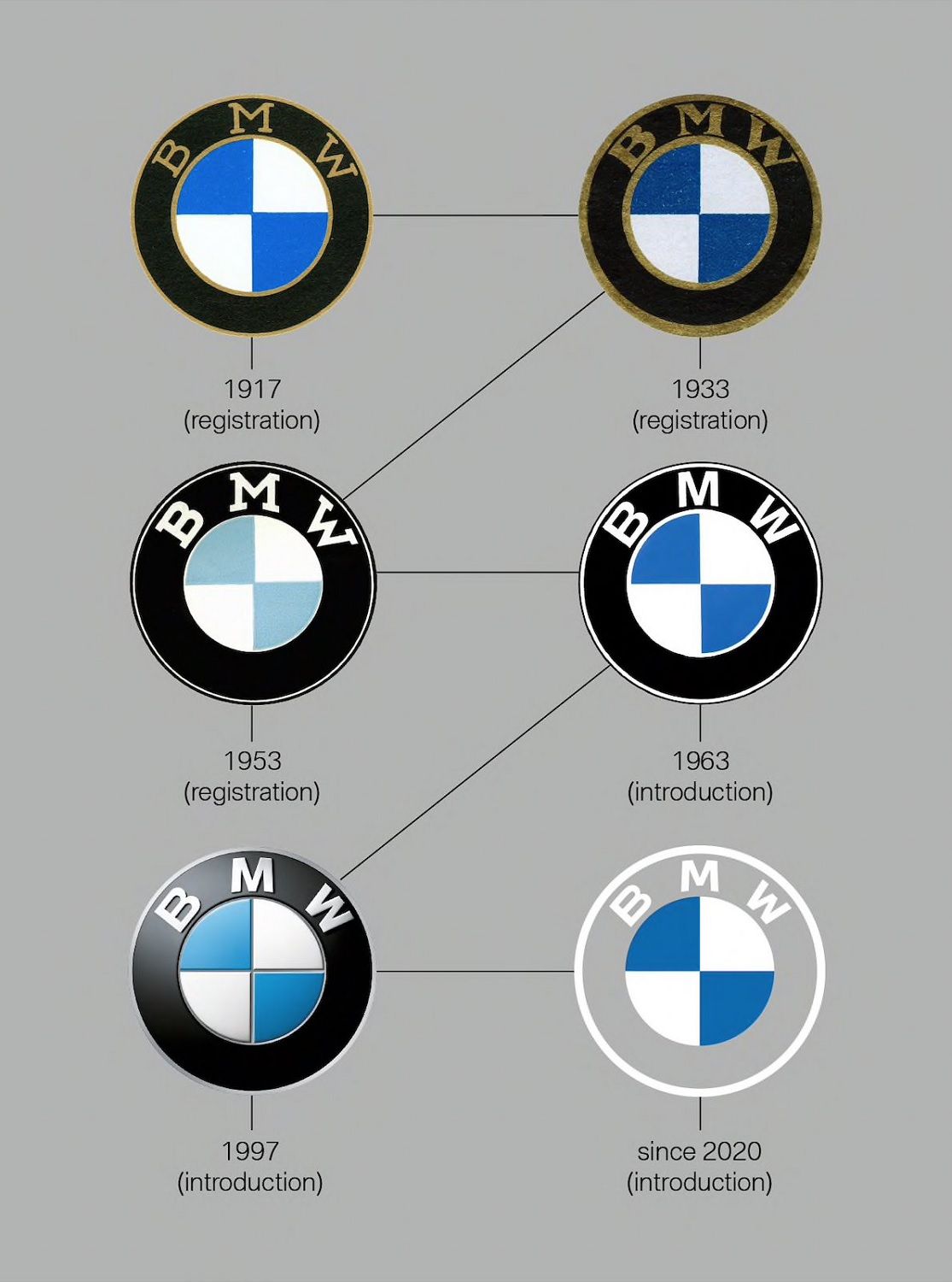 This is the sixth rebranding introduced by BMW in the course of its history. On the occasion of this graphic restyling, BMW debunked one of the most popular theories about its famous symbol: the Bayerische Motoren Werke logo does not stand for a stylized propeller.