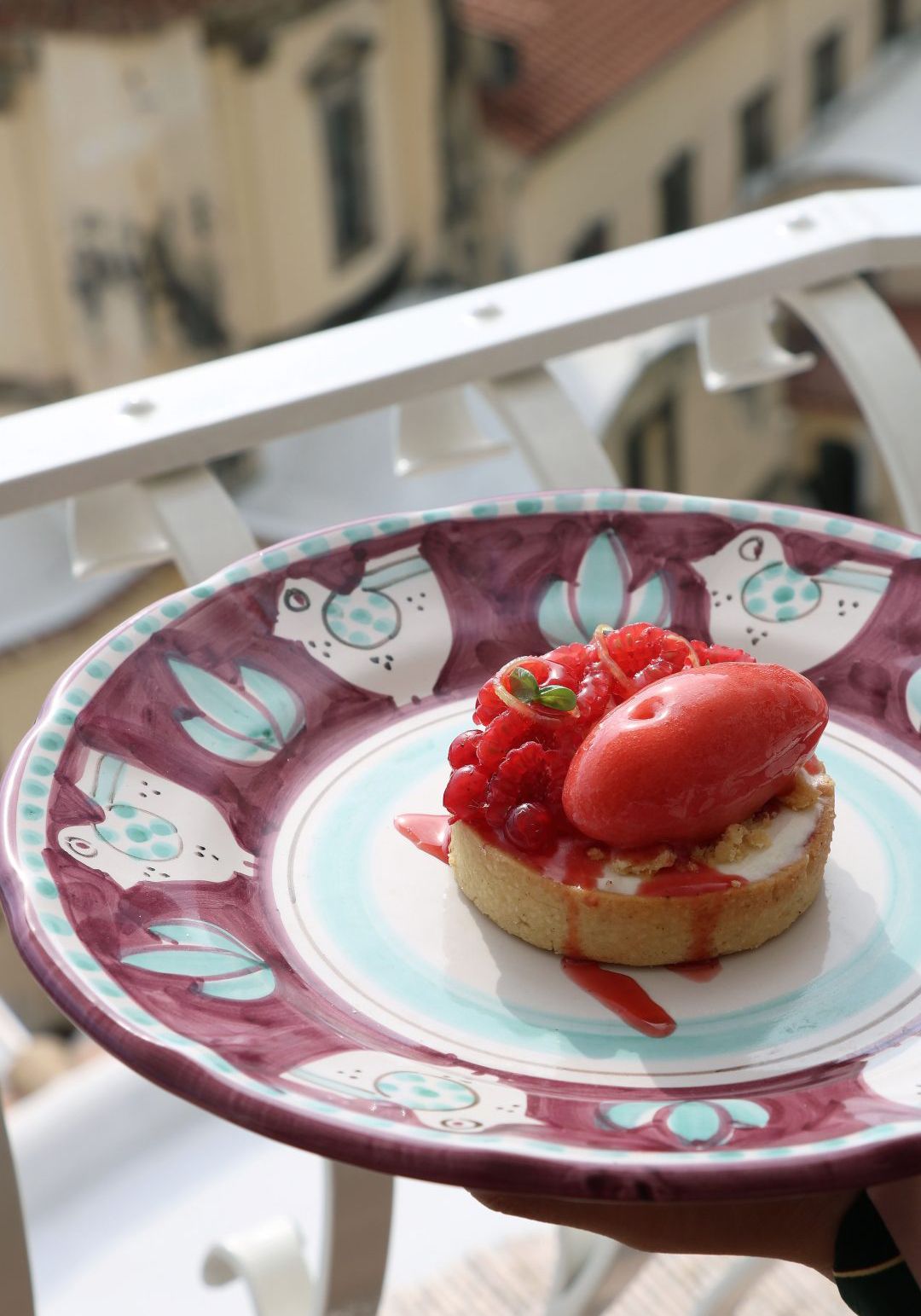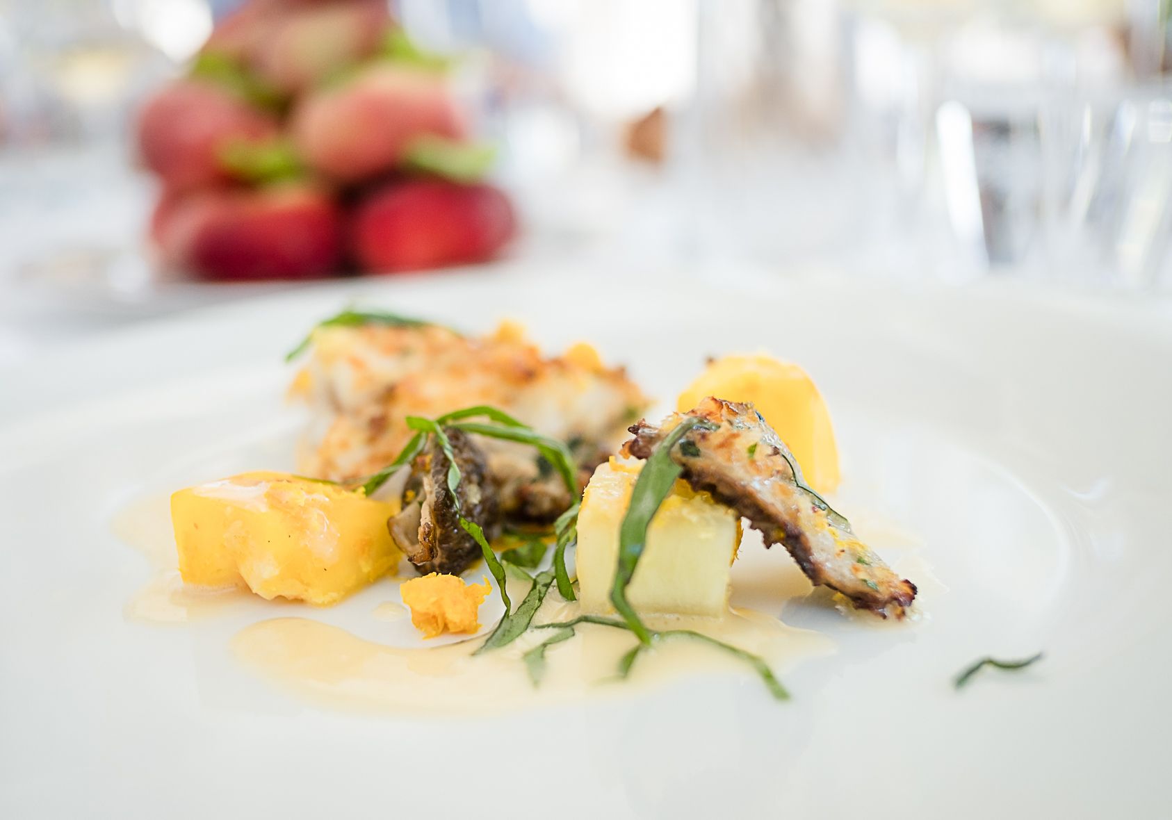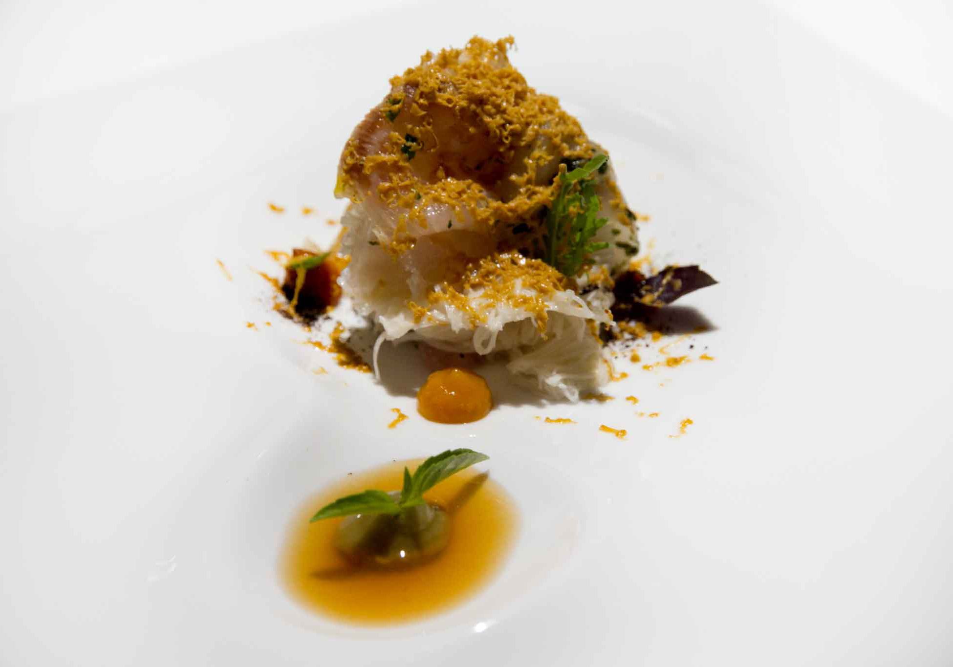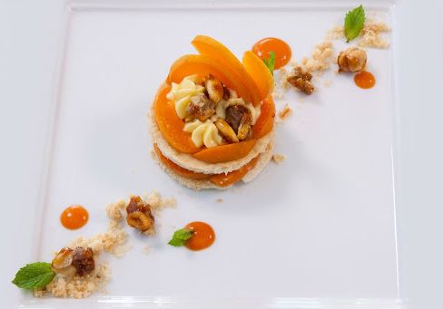 To try: Rimini fest / Sea bass, peaches, morchelle in white wine / Millefeuille, Cantiano cherries, parfait with verdicchio and chantilly with cinnamon