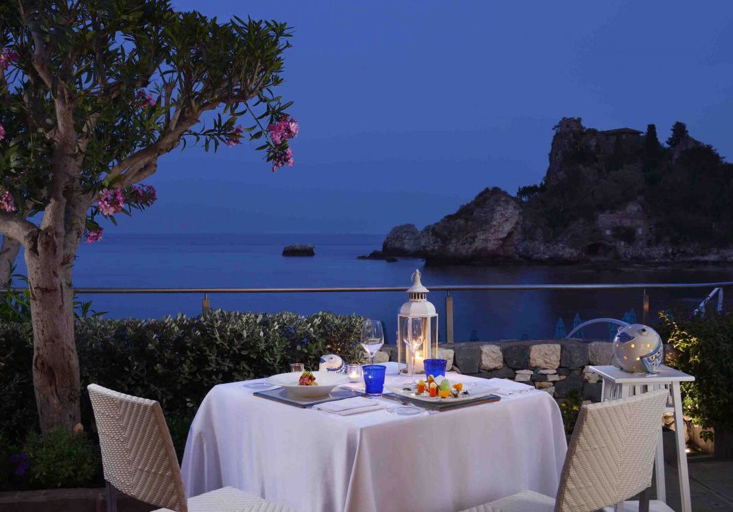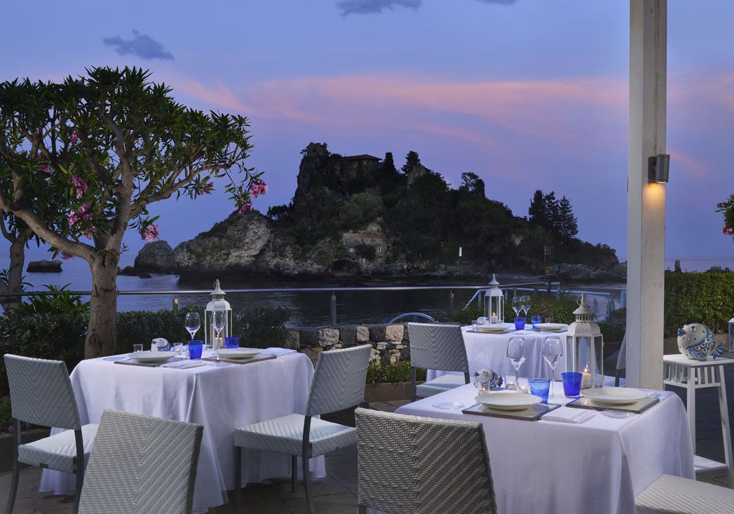In Taormina, on the east coast of Sicily, halfway between Messina and Catania, the coast road leads to the splendid structure of La Plage Resort: as a natural paradise facing the Isola Bella (also known as the Pearl of the Mediterranean), the resort enjoys a unique view of the sea and Etna. The restaurant is called Fusion and its philosophy is evident from the name: in its menu the Mediterranean flavors and traditions merge with the popular tradition of Sicilian cuisine. The panorama and the sea breeze make the experience unforgettable.