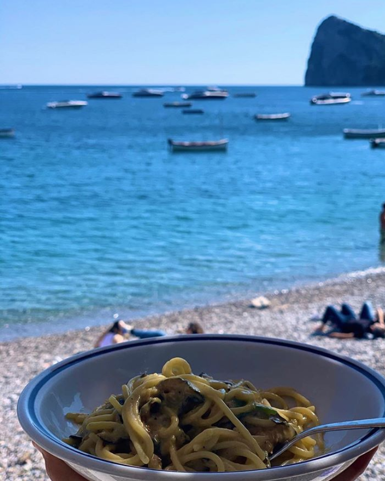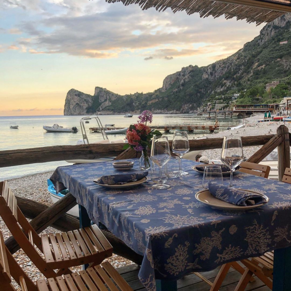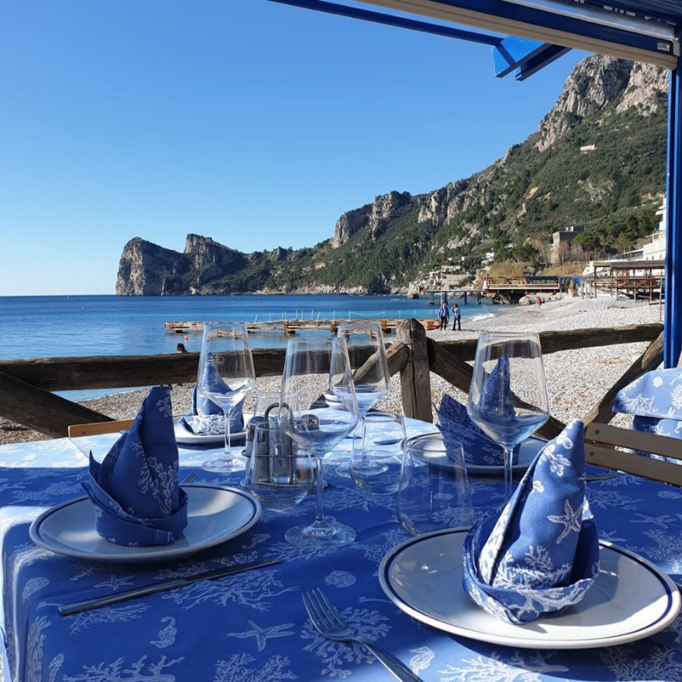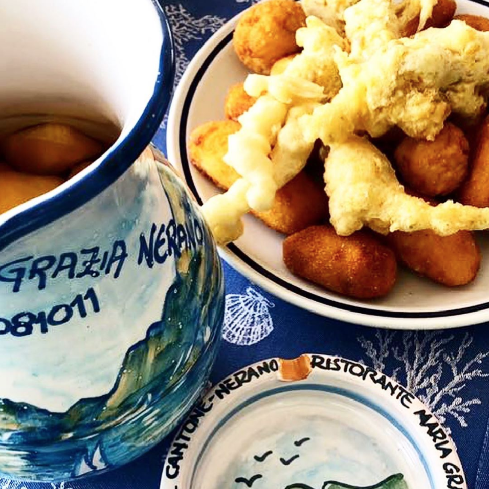 In the heart of the Sorrento Peninsula, a few kilometers from Sorrento and Positano, Maria Grazia is the most famous restaurant in Marina del Cantone, the bay of Nerano. On the beach, at the foot of the church of Sant'Antonio, the same family has run it for three generations: its dishes are simple, but of excellent quality, but among the first remains in history the most famous is undoubtedly the pasta with cucuzzielli (zucchini), invented as a joke in 1952 by grandmother Rosa and Prince Pupetto Sirignano.