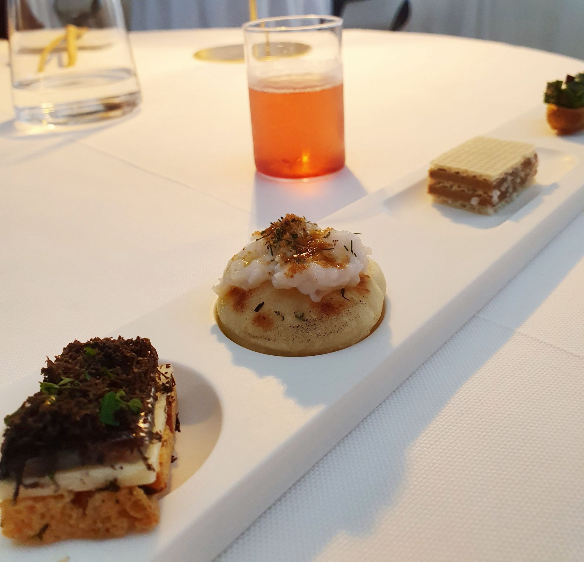 To try: Roasted calamari, fermented roots and herbs / Crispy red mullet, foie gras with Marsala and raspberries / Eclipse in chocolate variation