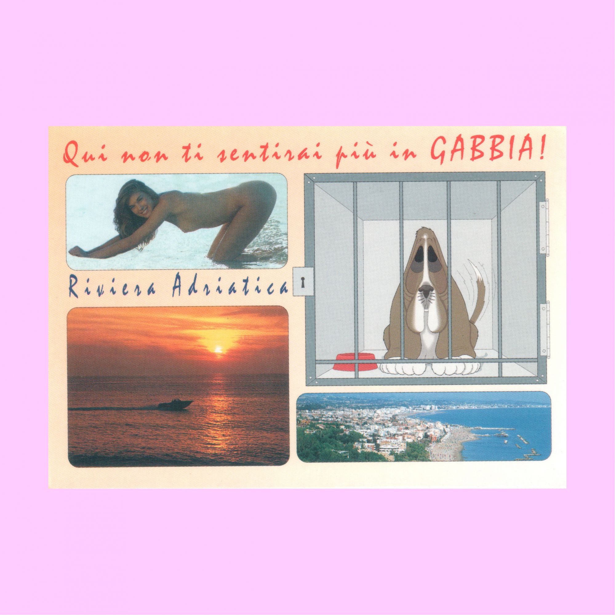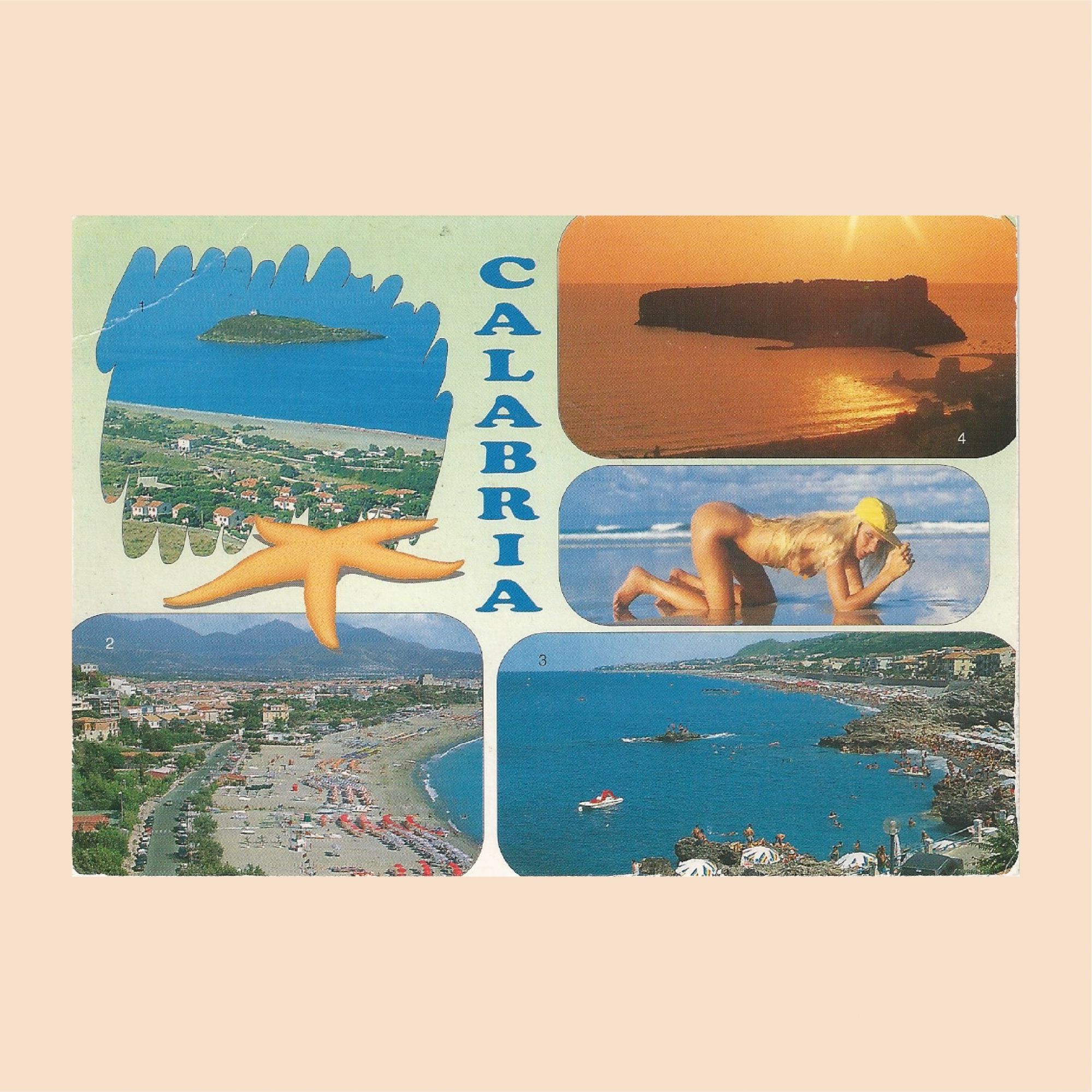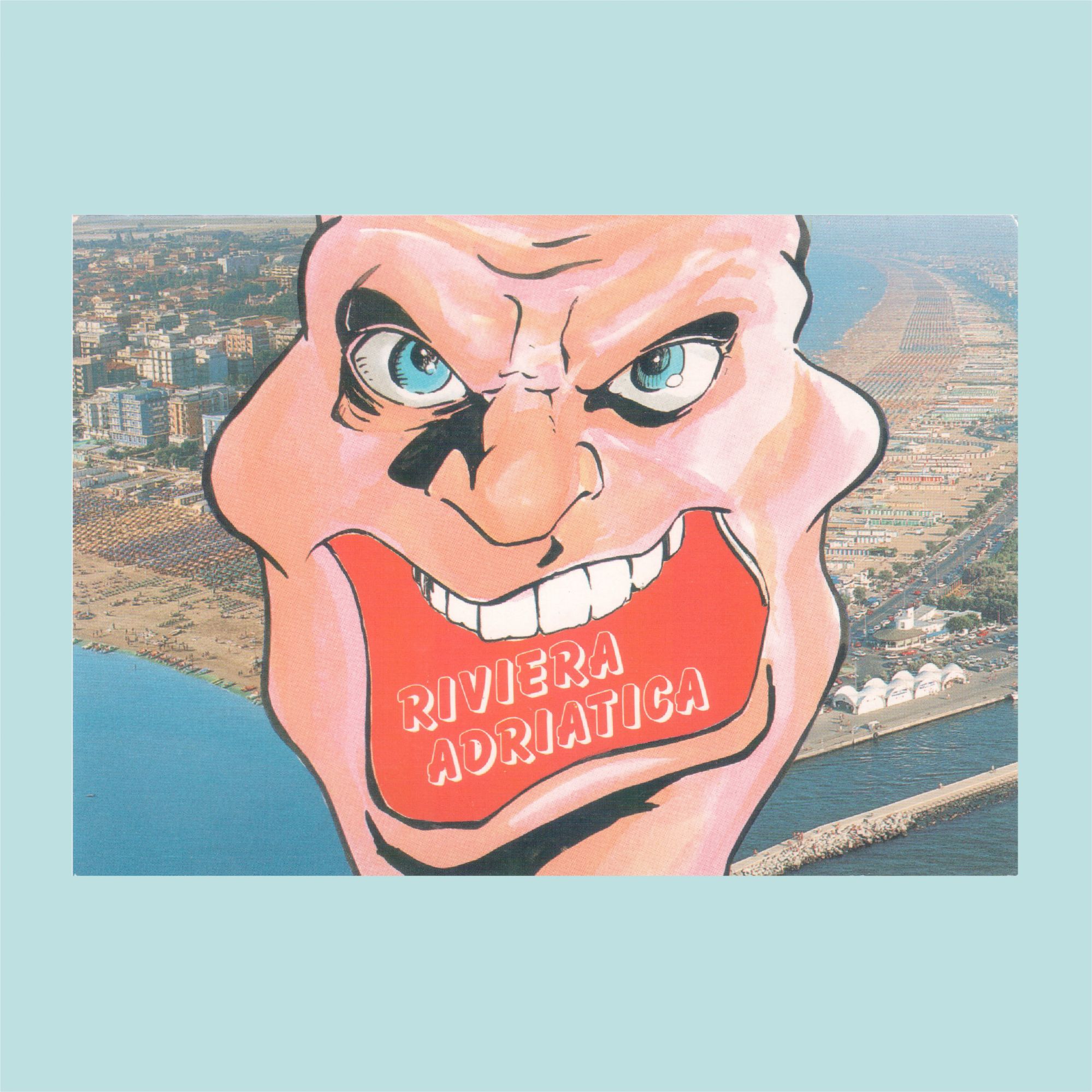 I wouldn't call my selection vintage," concludes Lorenzo; "The images of the postcards undoubtedly respond to the stylistic and cultural paradigms of the time to which they refer, but this does not mean they are 'nostalgic images': each postcard has its theme. The concept of historical memory is undoubtedly a transversal theme to this project, but there is no need to go back in time to find postcards perfectly in line with the traditional trash taste that we know wel. In the Adriatic Riviera (perhaps the most fertile area ever for the masterpieces we are talking about) you can find beautiful specimens even today.