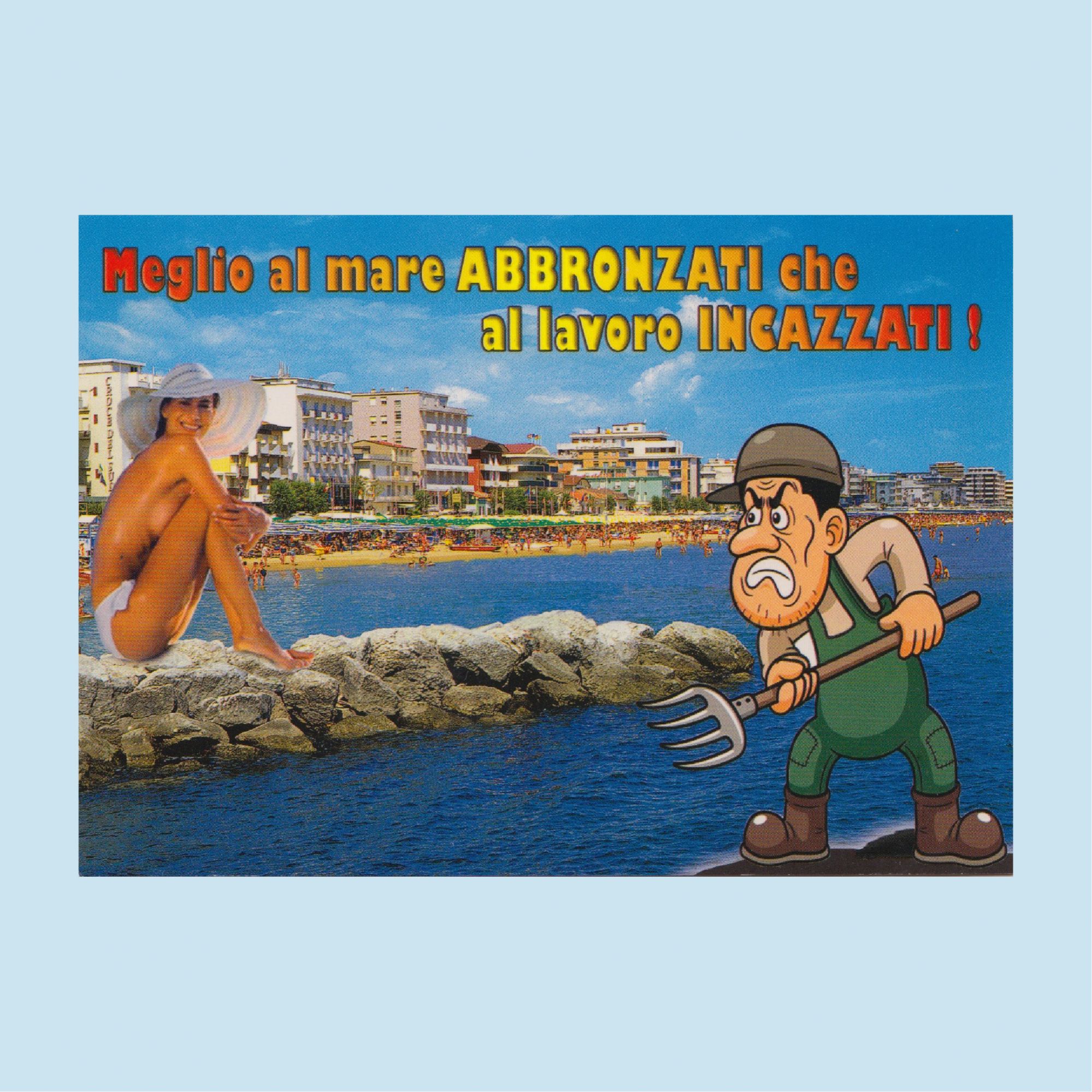 Before WhatsApp and the Stories that destroy themselves in 24 hours on Instagram, every time you went on vacation there was only one thing to do: send a postcard. Sometimes simple formalities, other times essential to tell friends about the first summer crushes, postcards have accompanied the summers of many generations, from the Eighties to the early 2000s. At the dawn of the new millennium, there was a particular kind of postcards that found its peak: one of ugly, trashy postcards, depicting naked people in unequivocal positions (especially women), glued in kitsch patchwork and embellished with writings in glitter. Who doesn't remember the classic "Saluti dalla Riviera Adriatica" or "Chiuso per ferie"?
