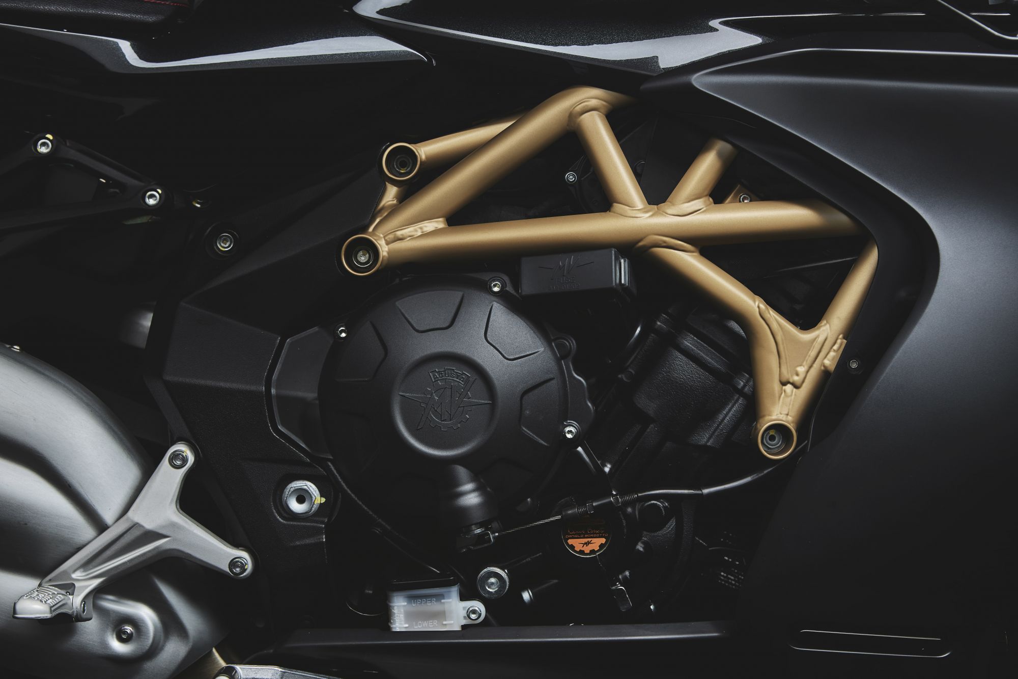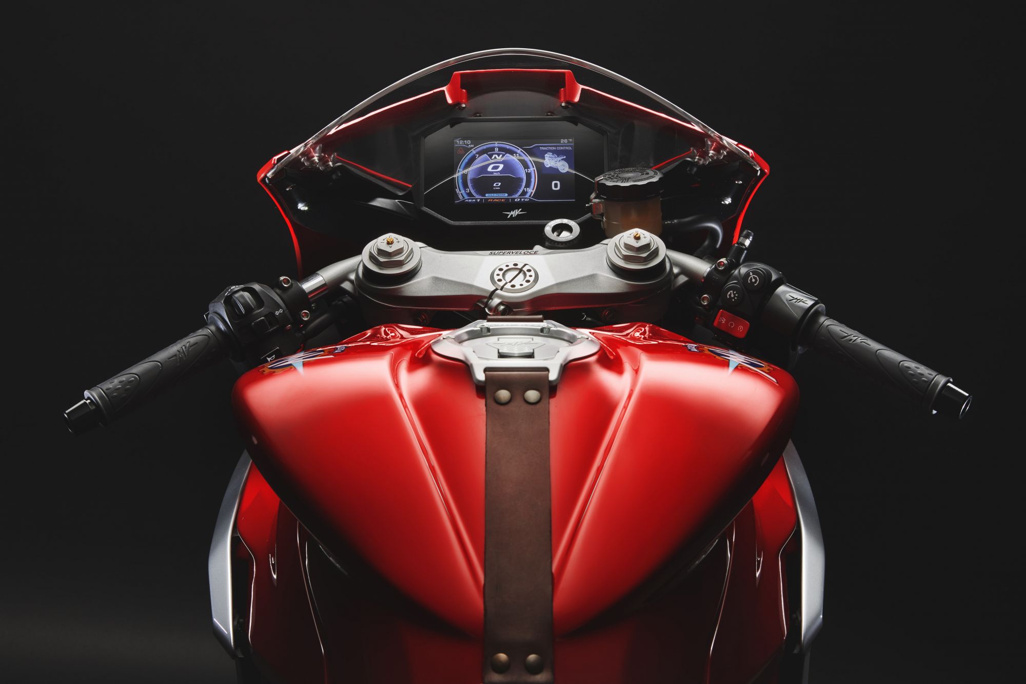 Finally, the control panel derives from that of the Brutale 1000 Series Gold, assembled from a compact TFT 5” color panel. Access to the menus is immediate thanks to the multi-function joystick on the left block and the special switches. The instrumentation manages a large number of functions, including incoming phone calls, messages and music, all thanks to the Bluetooth connection to the smartphone, as well as compatibility with the MV Ride app.