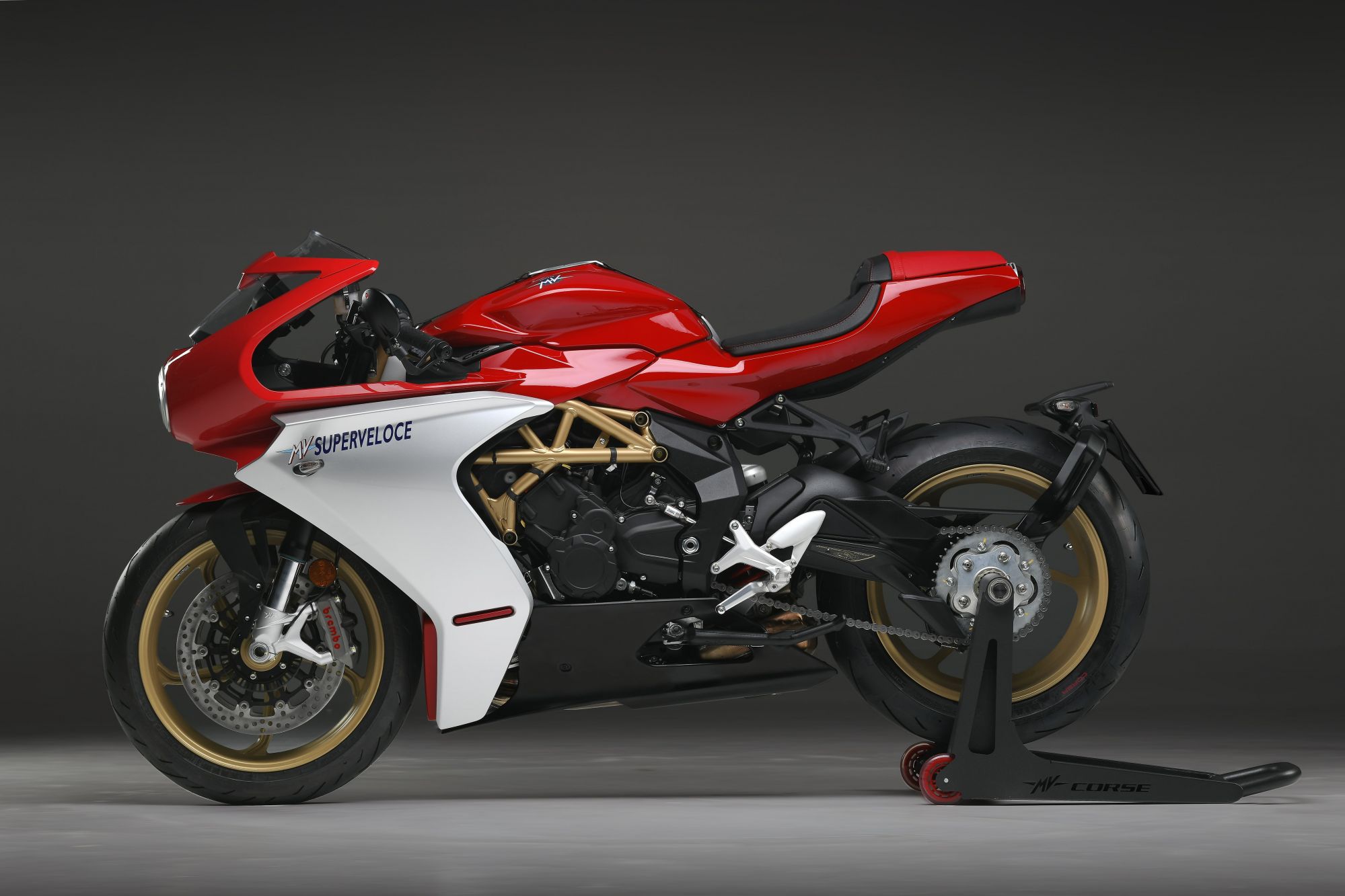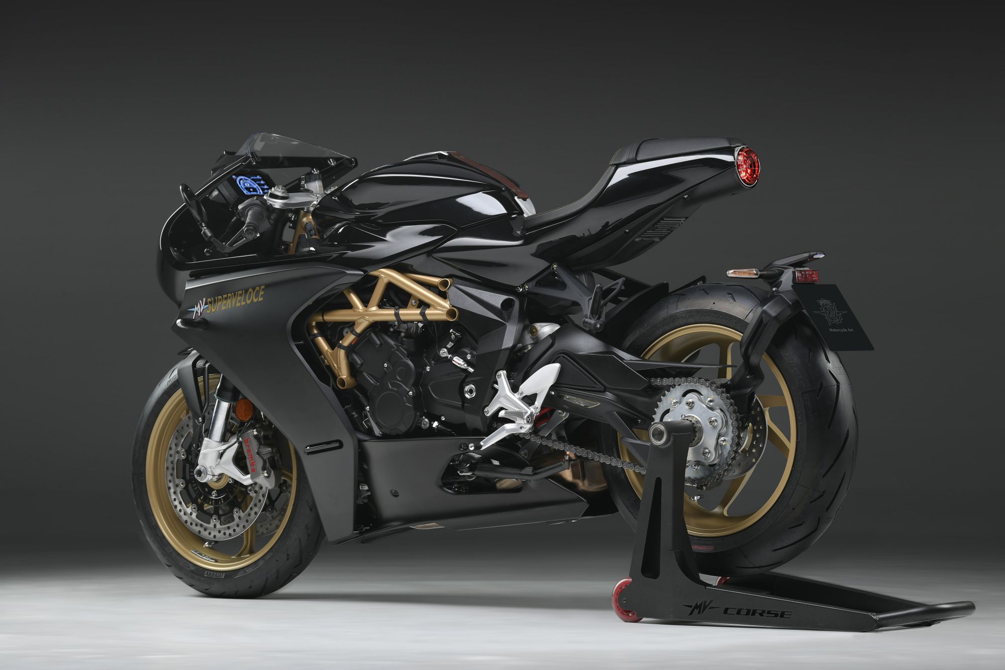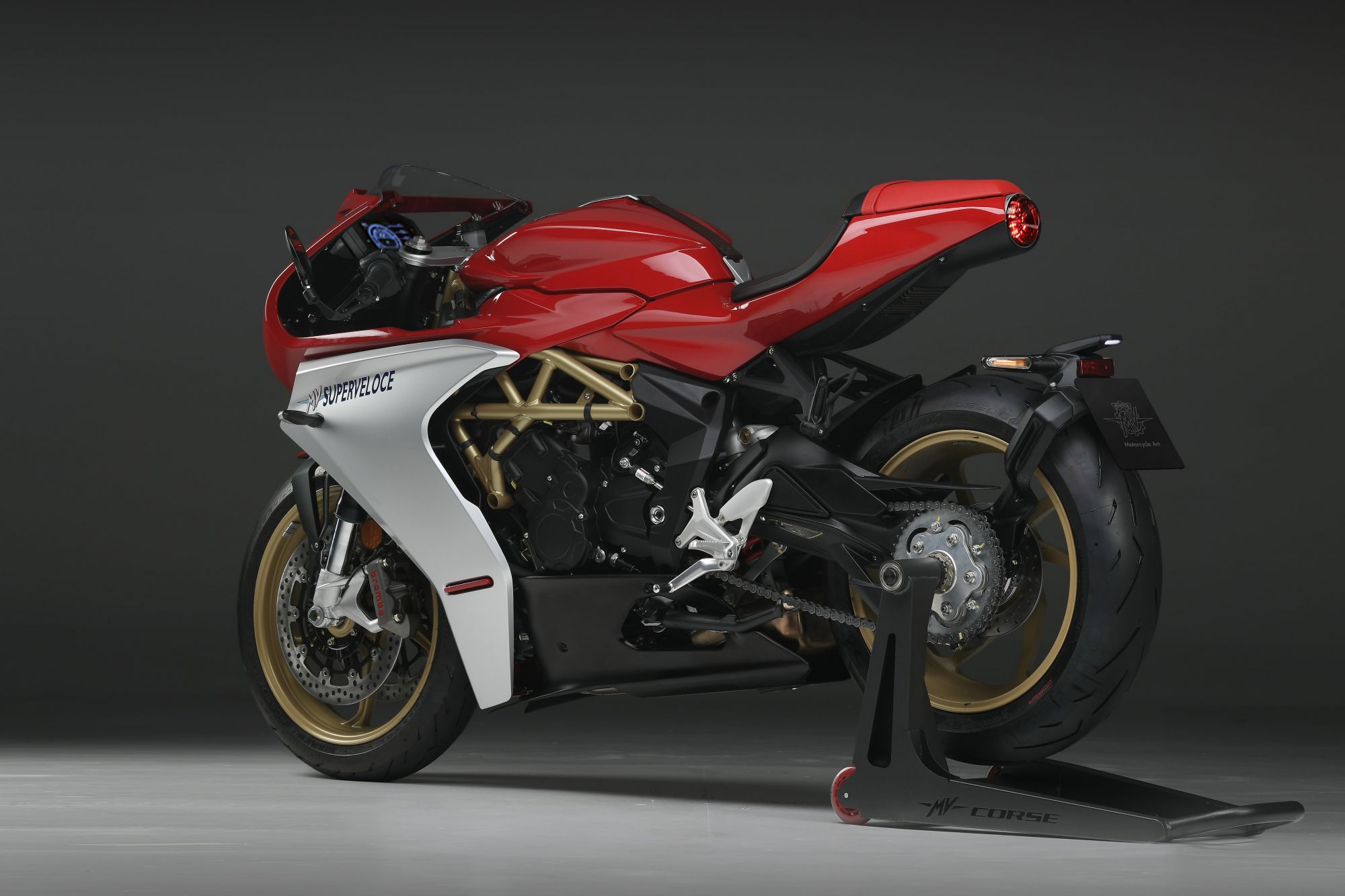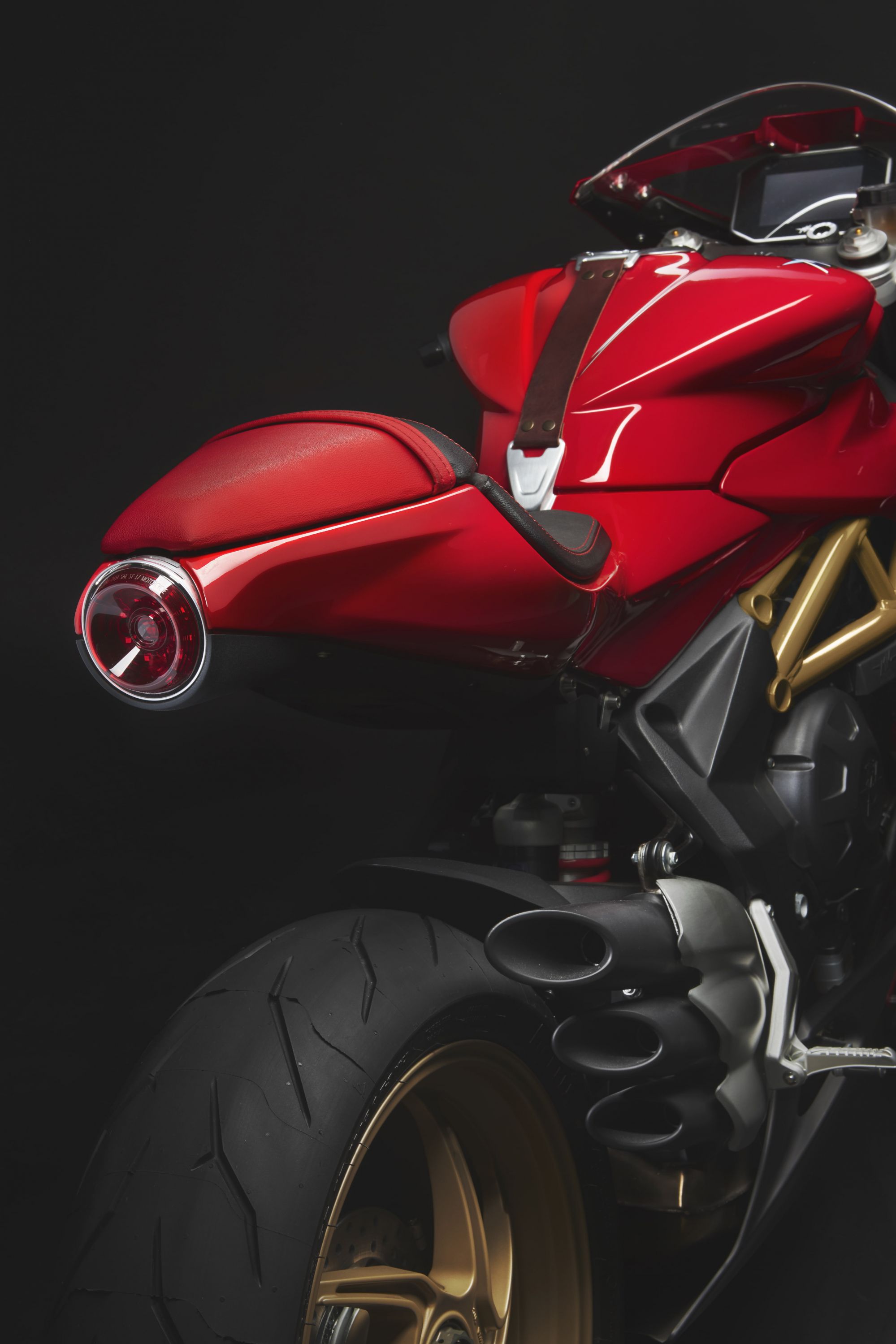 From a mechanical point of view, the engine already seen on the F3 800 does not change: 798 cc with counter-rotating crankshaft and double camshaft, capable of delivering 148 HP of power at 13,000 rpm with a torque of 88 Nm at 10,600 rpm / min. With two terminals on the right side and one on the left side, the Superveloce 800 touches 153 horsepower at 13,250 rpm.