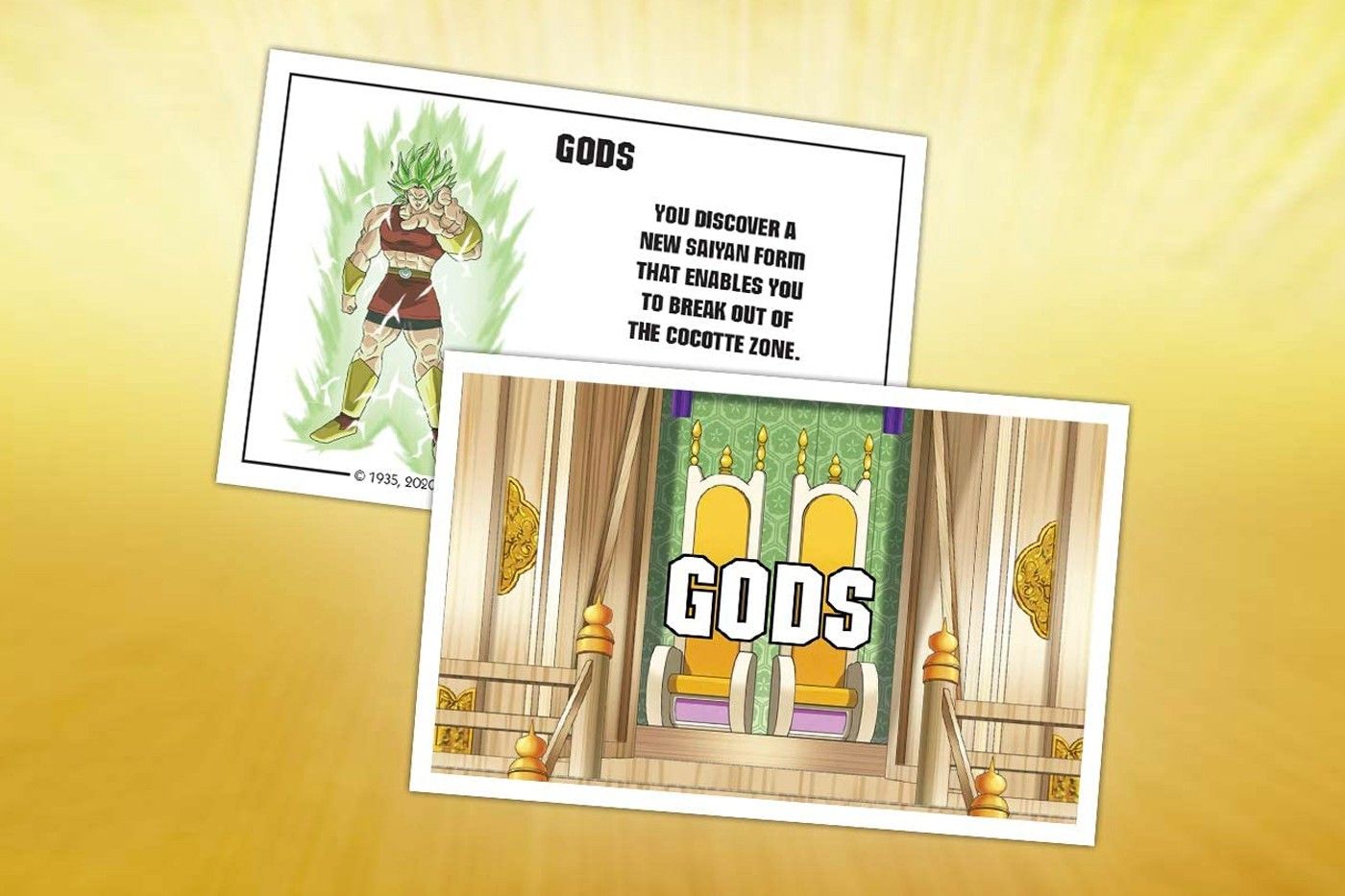 The "Gods" and "Warriors" cards will replace the Community Chest and Chance decks, the Jail will instead be replaced by the "YOU LOSE A FIGHT" box and, instead of buying land property, you will have to recruit warriors. The game's money will remain but the notes will be inspired by the character of Zeno, King of the Twelve Universes.