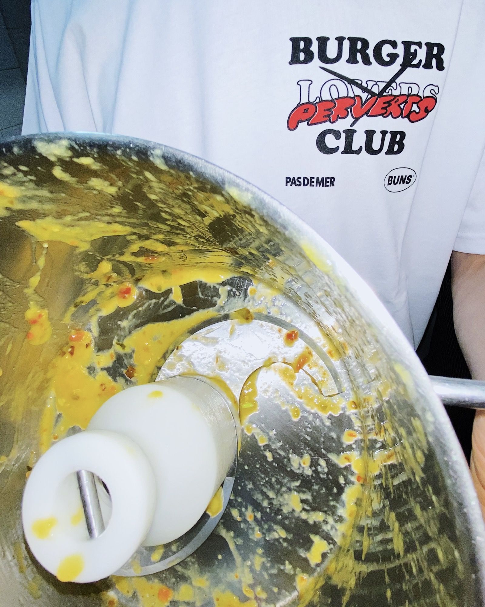The project takes shape with the name of Burger Perverts Club, a "vandalic" reinterpretation of the Burger Lovers club of BUNS, which already from the concept embodies the distinctive trait of Pas de Mer's style - ironic, provocative and unexpected - which is reflected so much in the items made together and in the burger proposed for the occasion. The two realities started from this concept and each created what they do best: a graphic printed on T-shirt and bucket hat and a special limited edition burger.