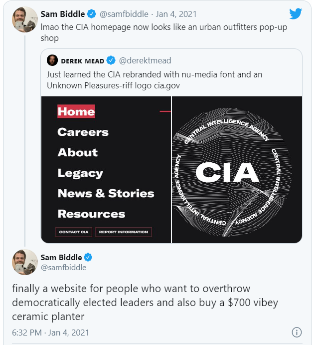 On Tuesday, the US intelligence agency CIA announced a rebranding by unintroducing a new minimalist logo that would help the government agency become more popular among millennials and Gen Z. Artist Ryder Ripps, a veteran of collaborations with Kanye West for Yhandi and Grimes, said he is the creative mind behind the CIA logo and site update, whose content is now more modern and diversity-friendly — though his creative responsibility remains debated and has received no official confirmation.