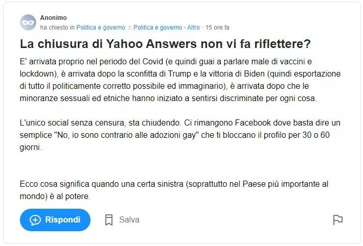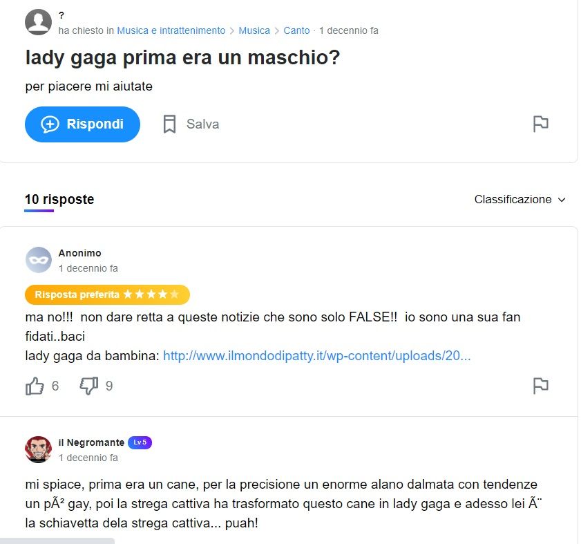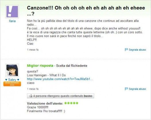 Yahoo! Anwsers, as well as Tumblr in its early days, the InSegreto site, proto-social media such as Netlog or the Myspace and MSN blog universe, was the example of a collaborative web culture model that today, in the extreme individualism of ad personam social accounts, is being lost. And although it is true that Tumblr still resists and that Reddit and Quora fulfill the functions that were once Yahoo! Answers, it is also true that the platform represented the first example of a web cultural phenomenon whose content was 100% user generated and in which creativity, humor and real life mingled in a way that today would be impossible to reproduce. Imagine asking the same awkward questions on a Facebook or Twitter group, where each post pretty much bears the signature of the person who wrote it, or asking, as an anonymous user did 10 years ago, "What's the song that goes 'Yuhuuuu uannagivaciuweva.. yuhuuu!'?".