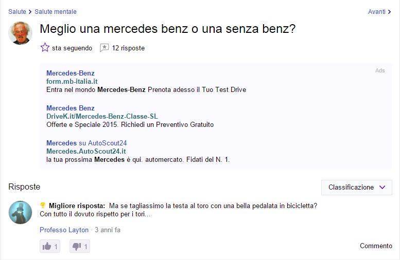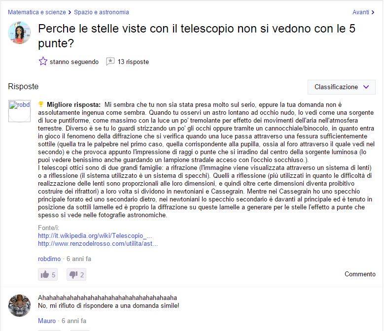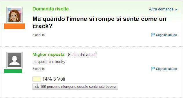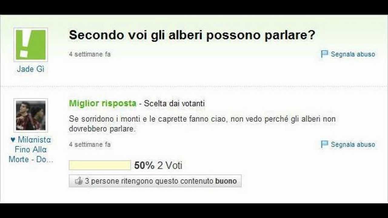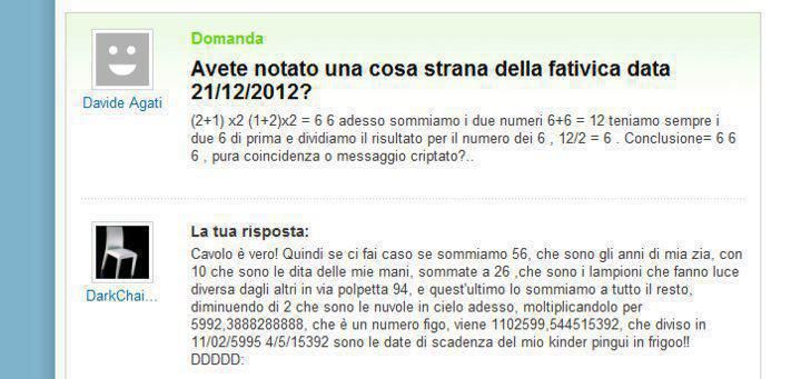 Yahoo! Answers, in short, was a liminal or, to use a comic term, a cross-dimensional place where the chaotic, naïve, fascinating and tragic ambiguity of the internet of origins manifested itself in all its paradoxical glory. Its main product was trolling and meta-humor, but also conspiracy theories, the ancestors of today's memes, as well as the ante-litteram version of triggering with deliberately out-of-mind questions and one of the first appearances of so-called "grammar nazis", people who answered questions only to fuse users' language errors. It was all the result of completely unconscious cooperation – a cooperation that laid the foundations of Italian Internet culture as we know it today.