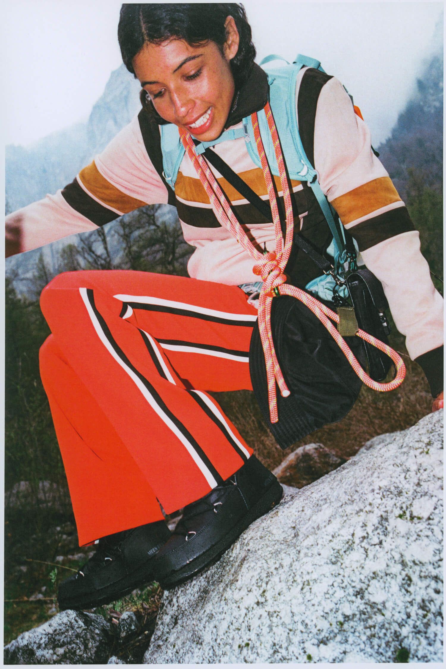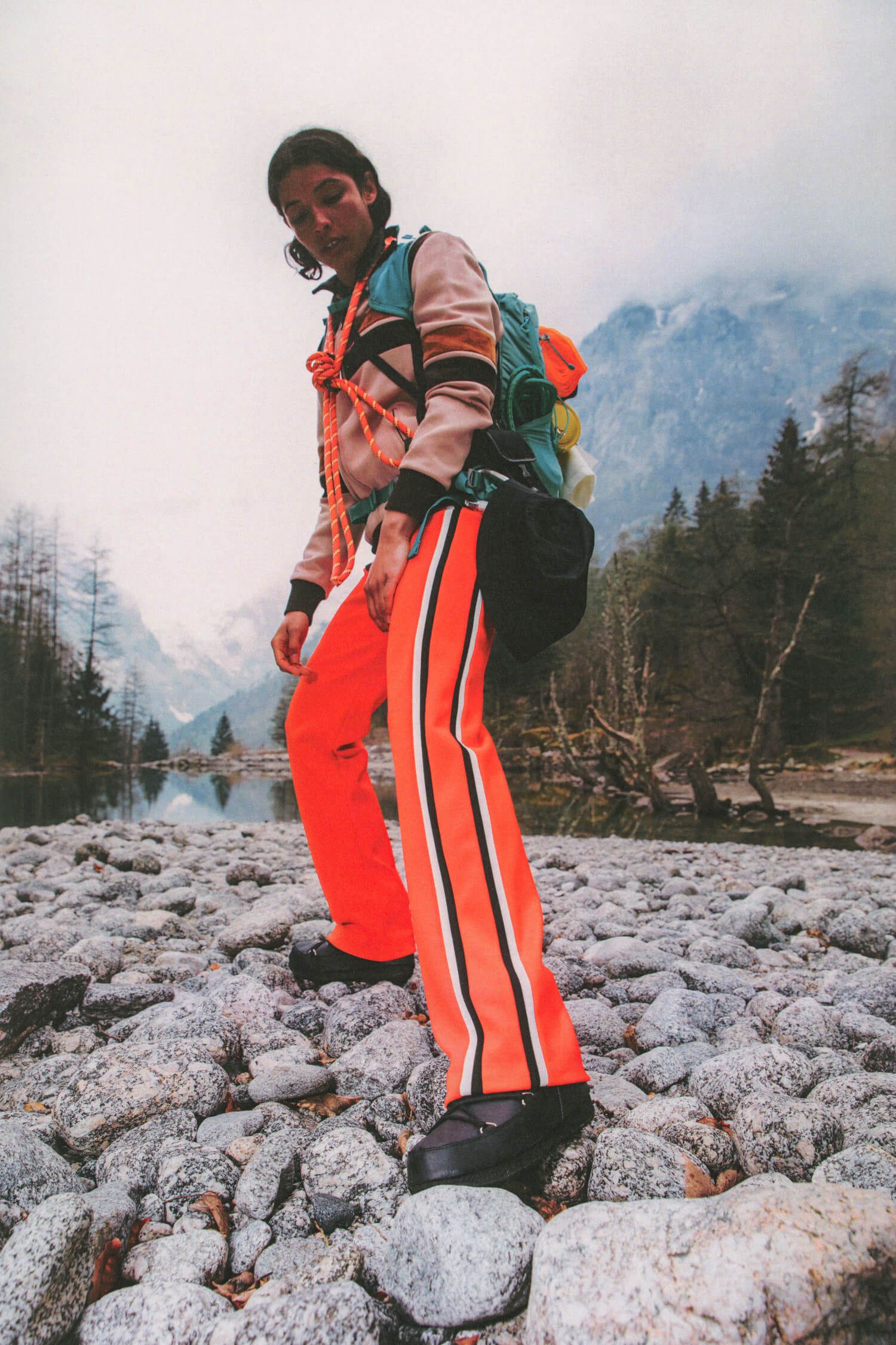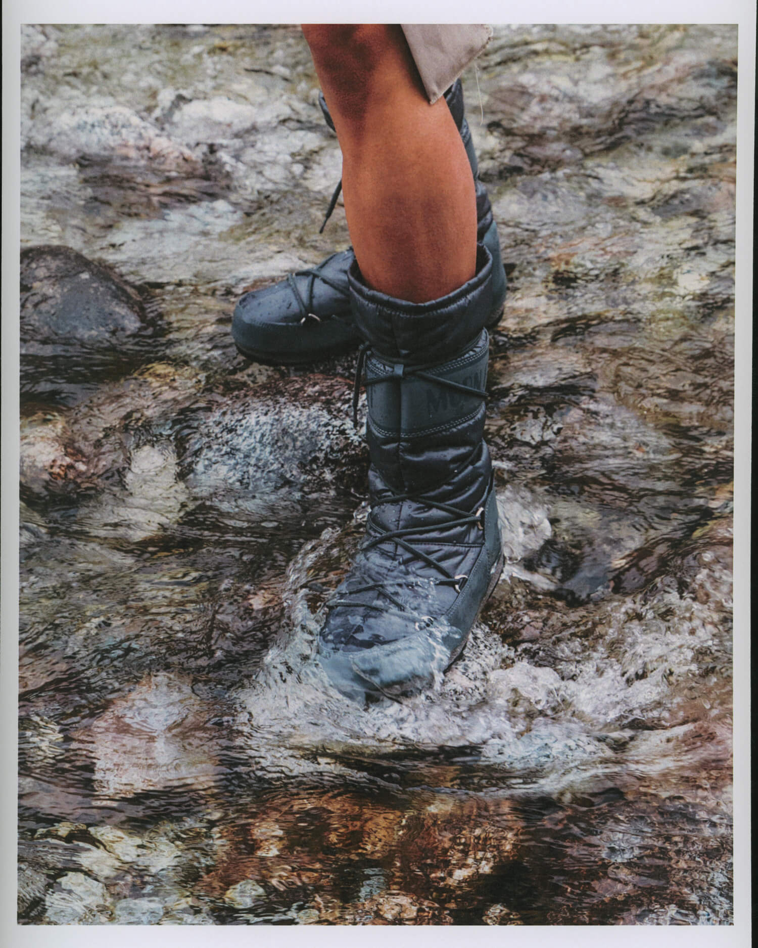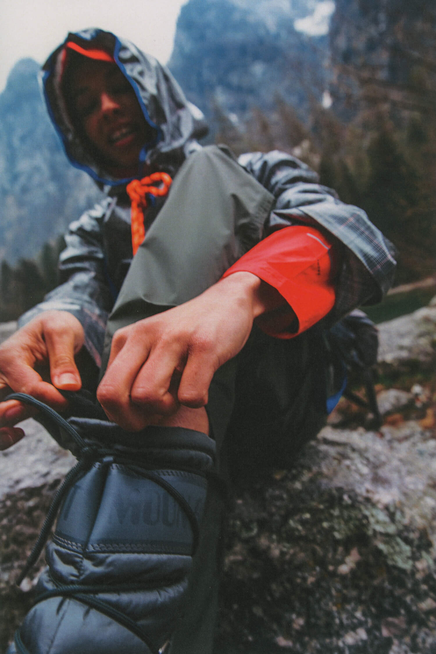 It is no coincidence that, in the past year, escapism towards the world of mountain and hiking has created gorpcore, the dominant fashion trend of 2020 – the same type of escapism that, in the 1960s, made the journey to the Moon the dream of a generation and led, by almost providential means, to the birth of one of the icons of Italian design in the world: the Moon Boot. When it was born, the Moon Boot was a worldwide phenomenon, a futuristic product for its own times as much as for ours – and that is why the freedom and majesty of the Italian mountains is the perfect scenery to frame the brand’s Protecht Line. On the occasion of the launch of the new line, in fact, the brand has signed an interpretation of its heritage that is at the same time innovative and faithful to its original spirit, immortalizing it among the woods, streams and mountains of Lombardy.
