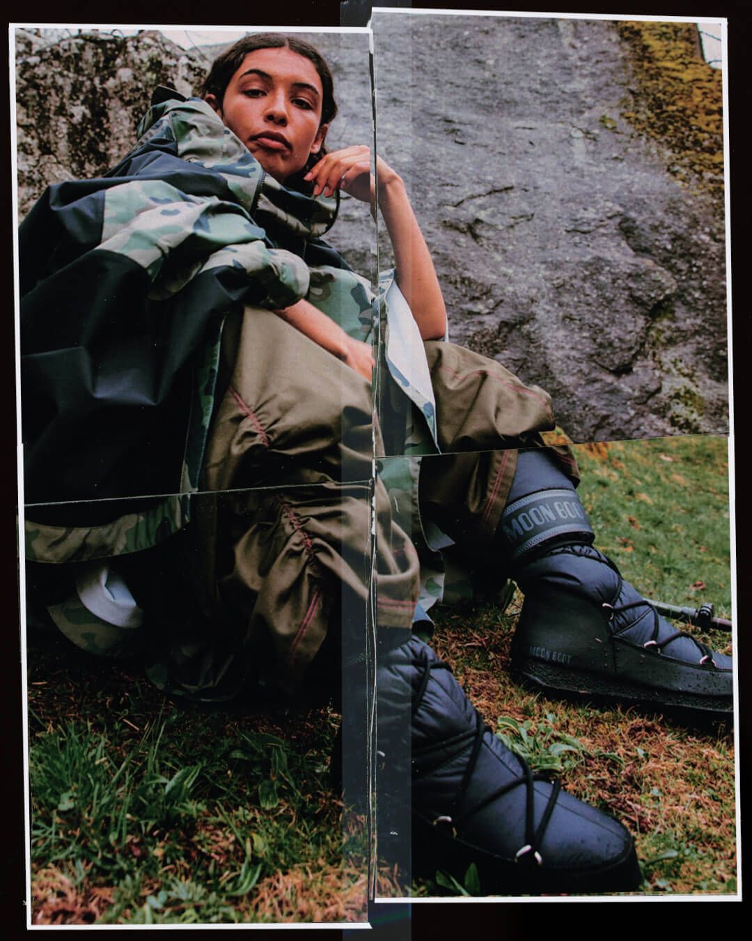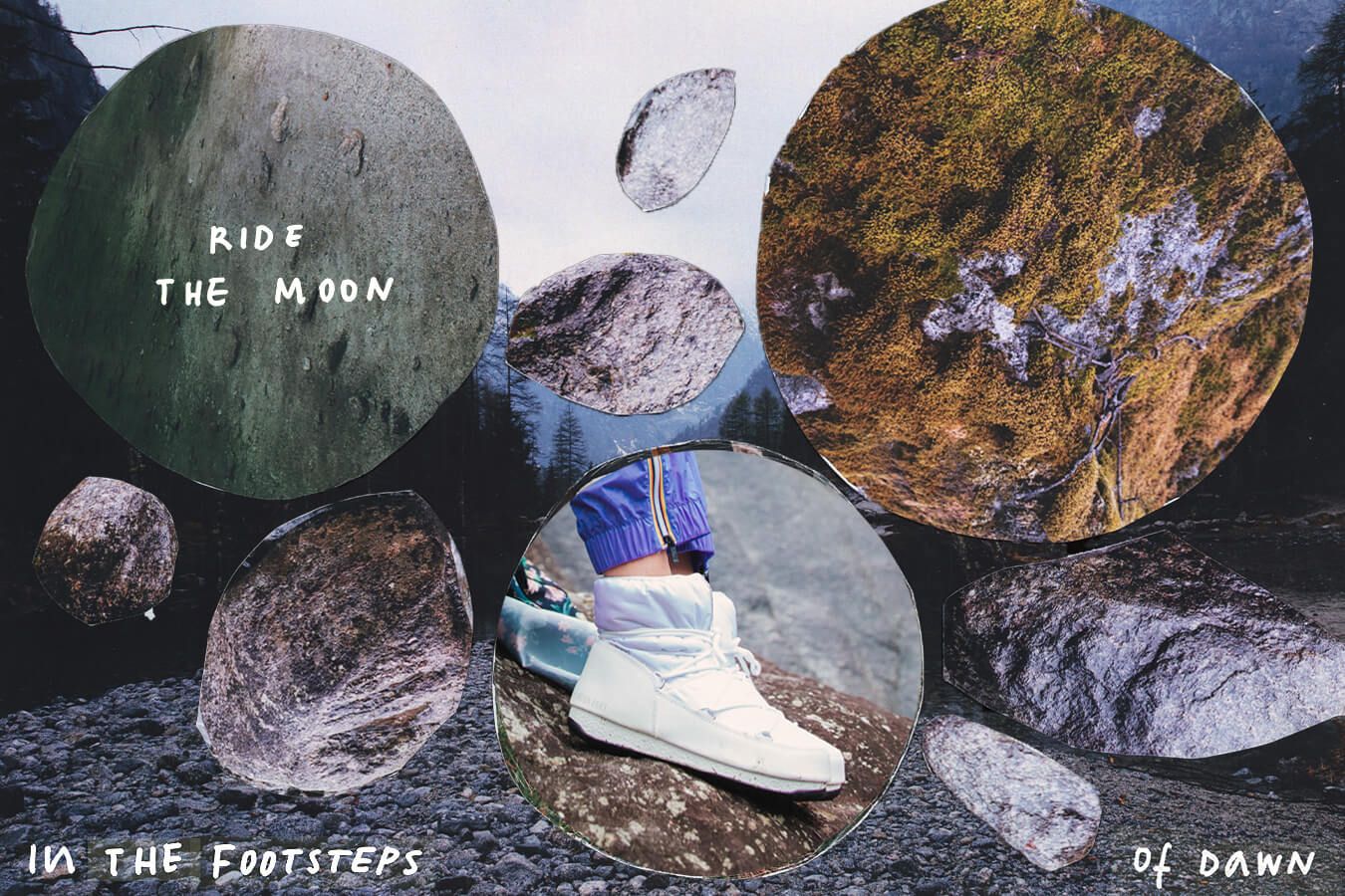 The outdoor aesthetic according to Moon Boot Protecht The brand's new Protecht line against the backdrop of forests and alpine peaks