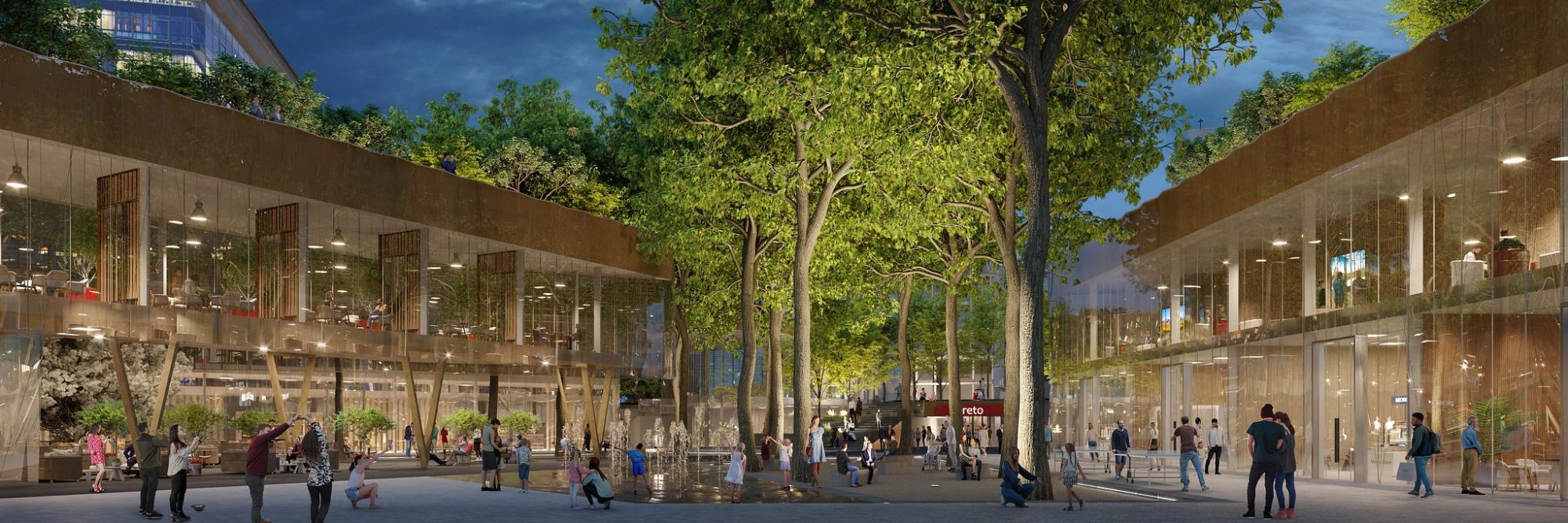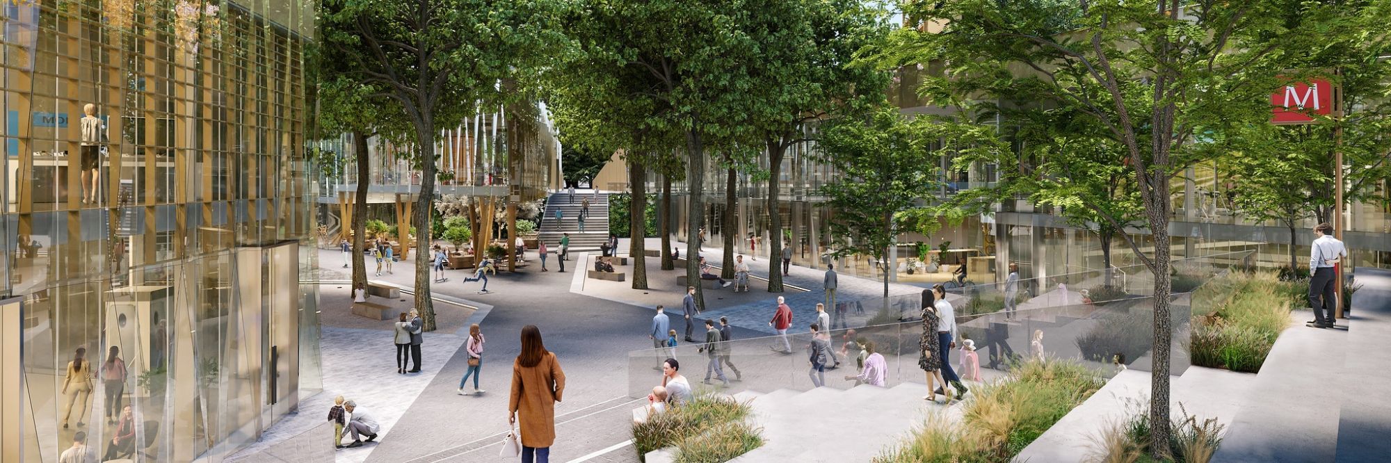 A three-level system, all three walkable, will connect the road, the metro station and the buildings themselves through a set of staircases that will create a seamless space between the street level and the subsoil, with space entirely protected from the foliage of the trees. The project to redevelop the square will in fact create 10,000 square meters of green public space with 500 trees that will create the atmosphere of an oasis – it is no coincidence that the first nickname given to the project is that of "Agora Verde". Andrea Boschetti of Metrogramma, design team coordinator explained: