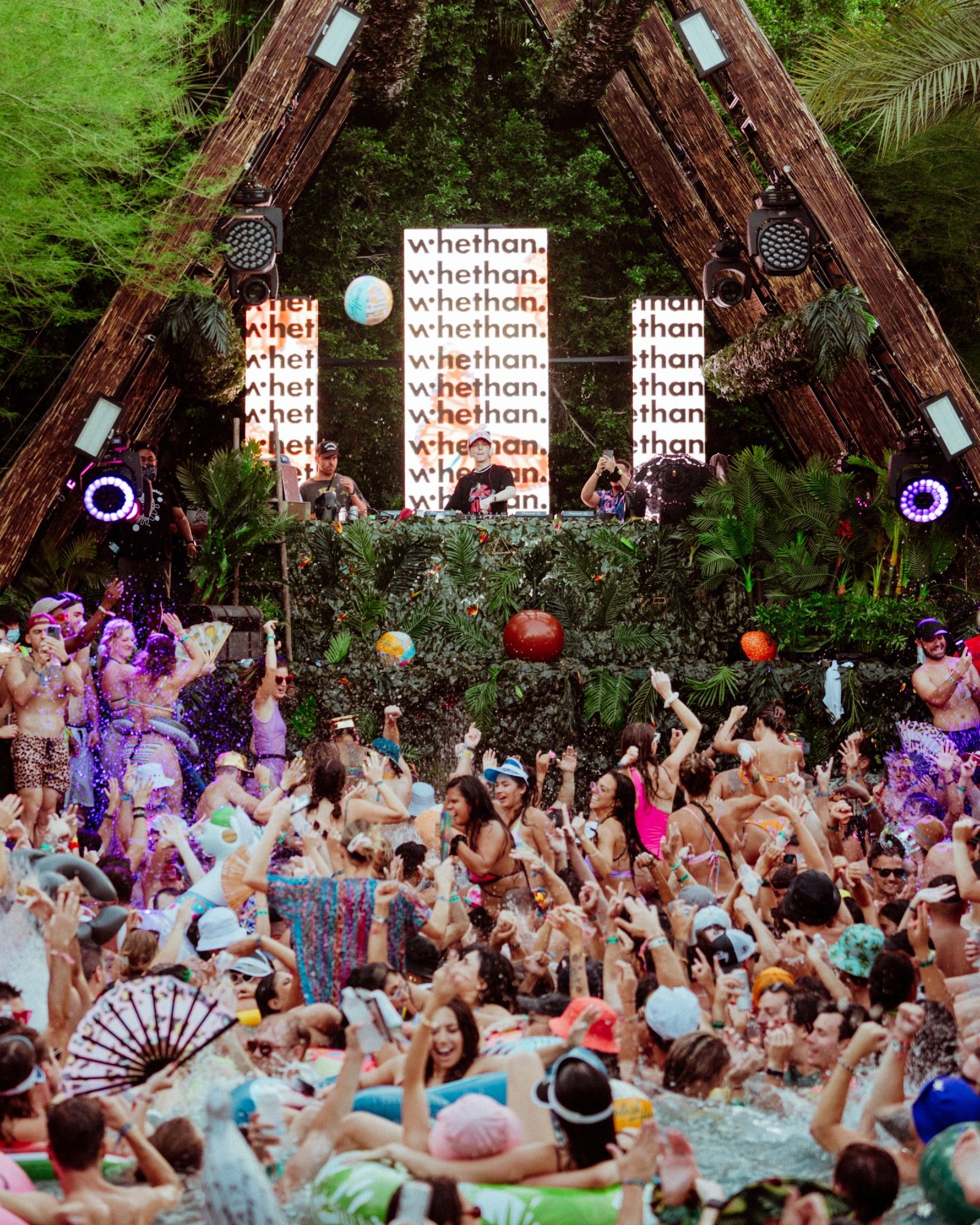 Splash House is, quite frankly, reminiscent of the kind of massive pool party Millennials and Gen-Z grew up watching on MTV (arguably way too young?) during Spring Break. Wet bodies and smiling faces alike throwing their wristband adorned hands in the air at every calculated beat drop, guzzling alcohol on a branded pool floaty, and all the R rated activities that, (fortunately for our impressionable youth) get edited and censored out.