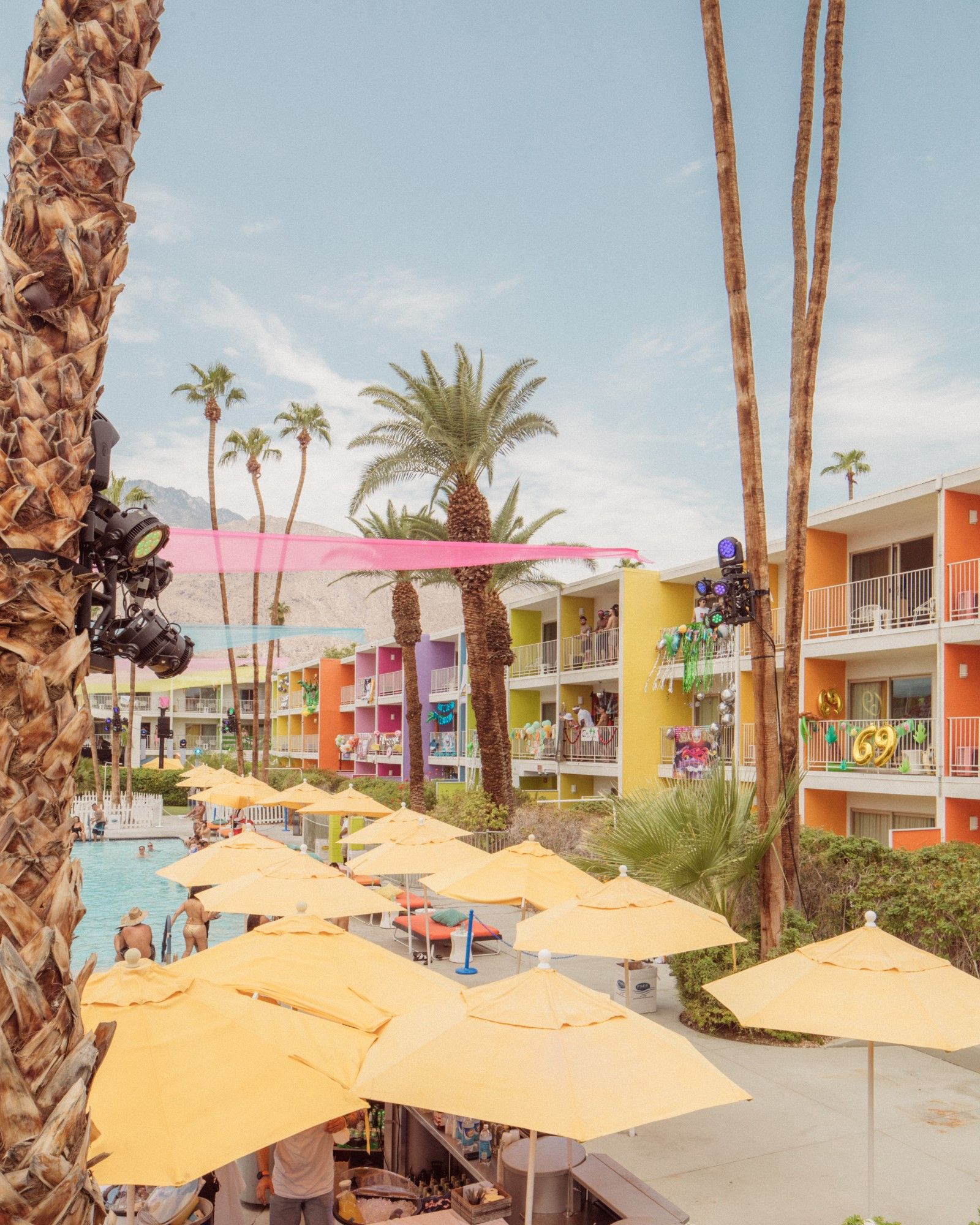 After recuperating from the previous days events with a deep sleep, and leaving my poolside room for a Saturday morning swim at the tranquil, and boutique style Alcazar Palm Springs, I ate a hearty eggs benedict with a “daytime margarita”. I then ran back to my room to down 3 flutes of (arguably cheap convenience store) champagne in preparation for Splash House’s first day of events. Spanning 3 unique hotel venues, all within 5-10 minutes of each other, free shuttles transported groups of beautiful, bathing suit clad attendees in between the 3 hot spots, at their leisure, to dance the sun-saturated afternoon away into the picturesque sunset filled night. The DJ’s were bursting with all the life and energy of someone who’s had their life forcefully put on pause for a year, playing some of the most electrifying yet deeply soulful mixes I’ve ever heard. My drink of choice? Tequila and seltzer water. I like to see how much alcohol is going into my cup, and I like to cut the tang of margarita mix.